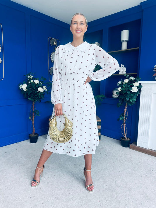 Doireann Detailed Midi Dress Polka Heart Coco White