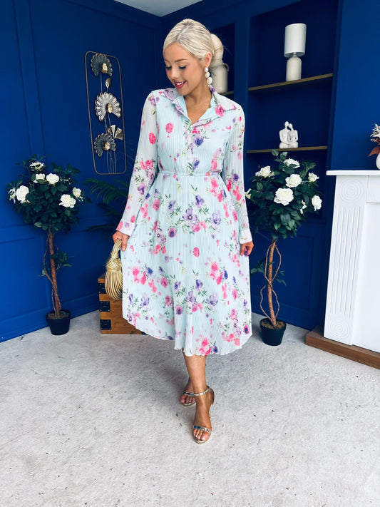 Blaire Detailed Plisse Midi Dress Floral Mint