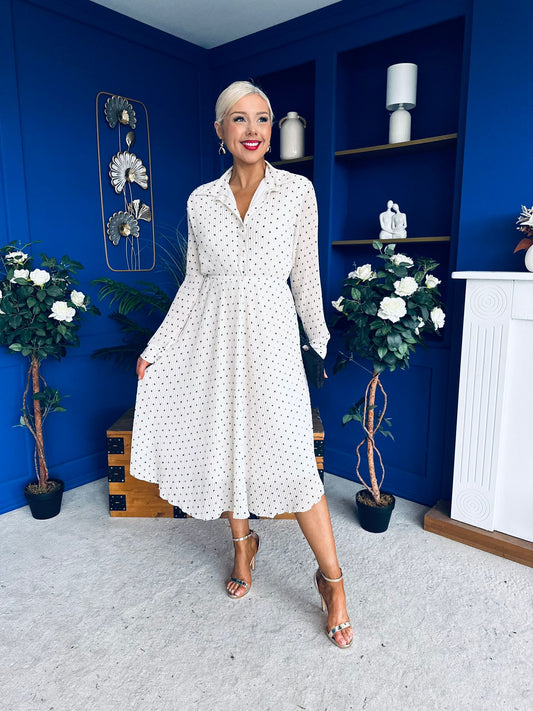 Blaire Detailed Plisse Midi Dress Polka Cream