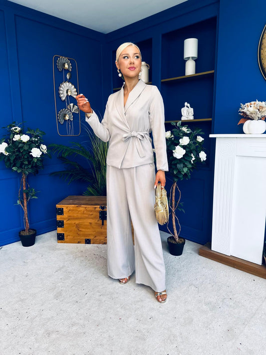 Marissa Short Sleeve Denim Jumpsuit Beige PRE ORDER Arriving 11 March