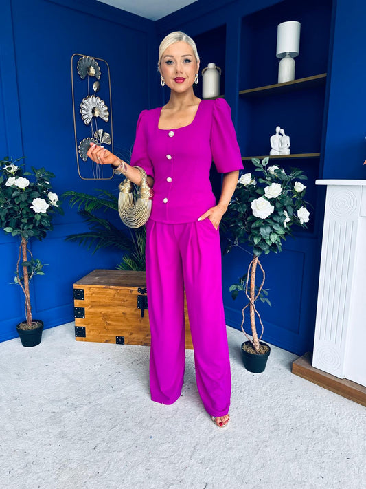 Daniella Detailed Top And Trouser Set Fuchsia