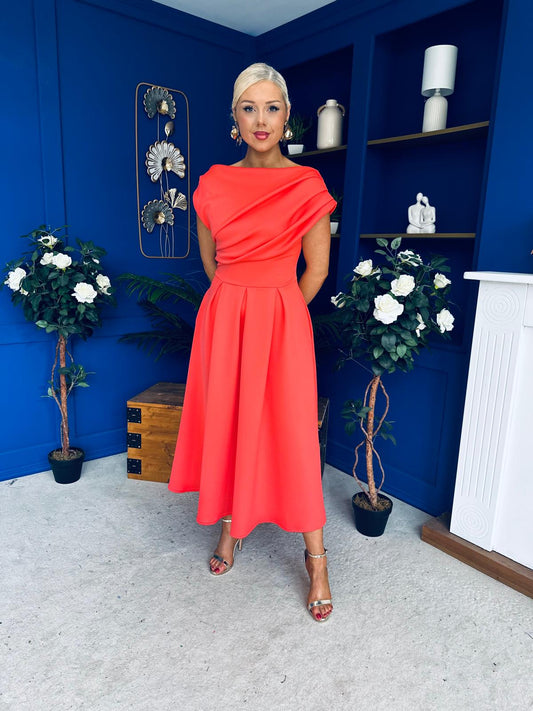 Eibhlin Detailed Occasion Midi Dress Fuchsia