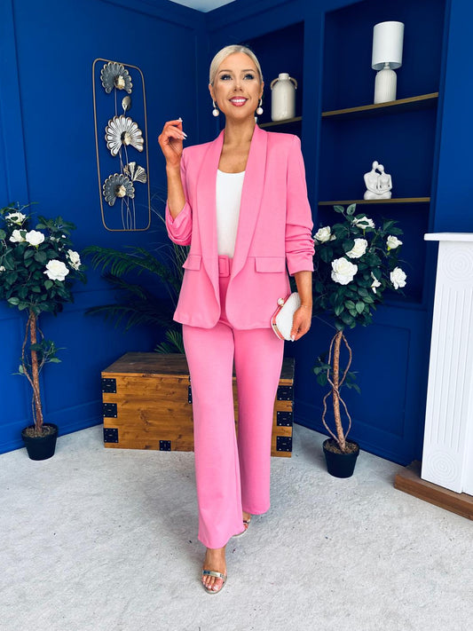 Danika Ruched Blazer & Belted Trouser Set Cerise