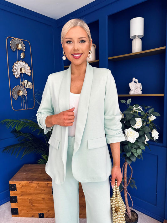 Danika Ruched Blazer & Belted Trouser Set Mint