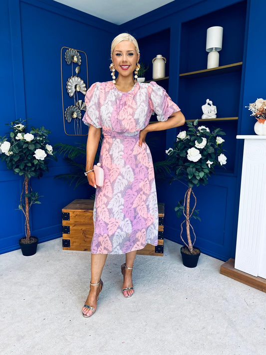 Imogen Gathered Detail Midi Dress Leaf Lilac