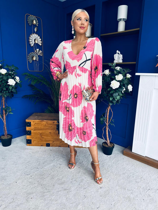 Caitriona Pleated Midi Dress Floral White