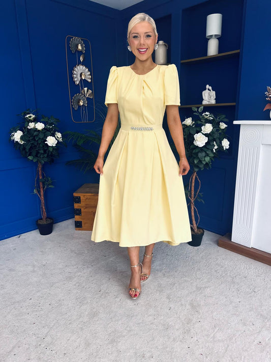 Eibhlin Detailed Occasion Midi Dress Yellow