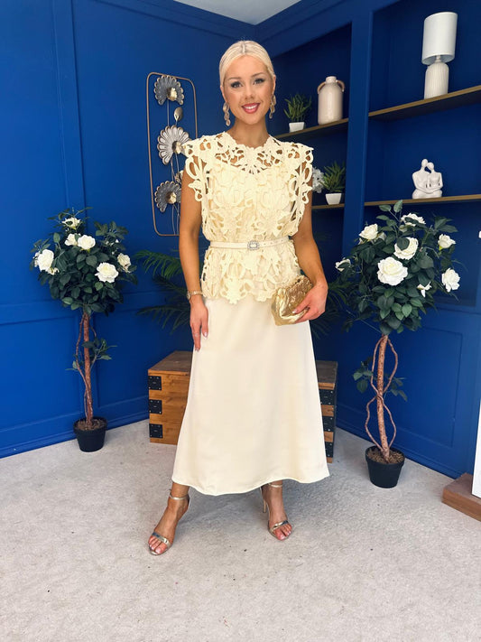 Ruth Crochet Top & Satin Dress Set Pink Pre Order 29 Apr