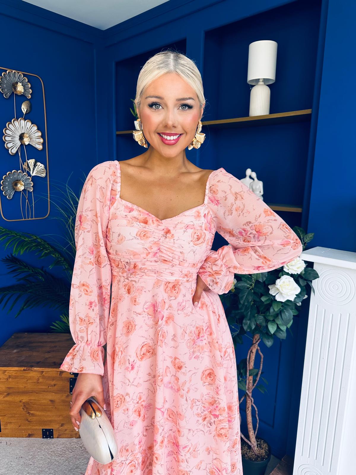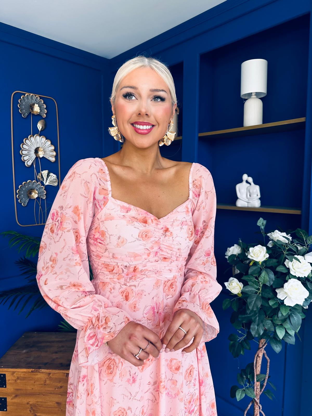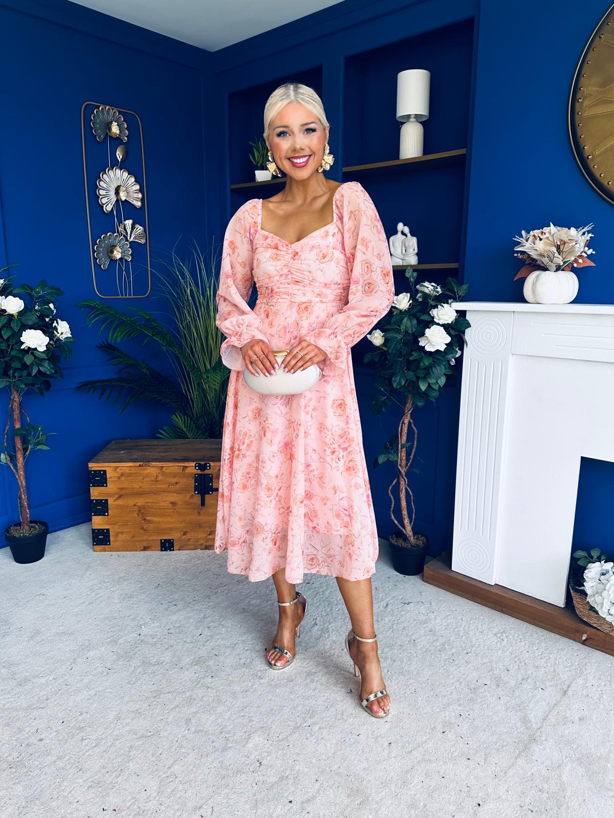 This dress comes in the most amazing print with beautiful full sleeve detail, ruched bust, banded midriff, elasticated back to cinch and flowing skirt to flatter