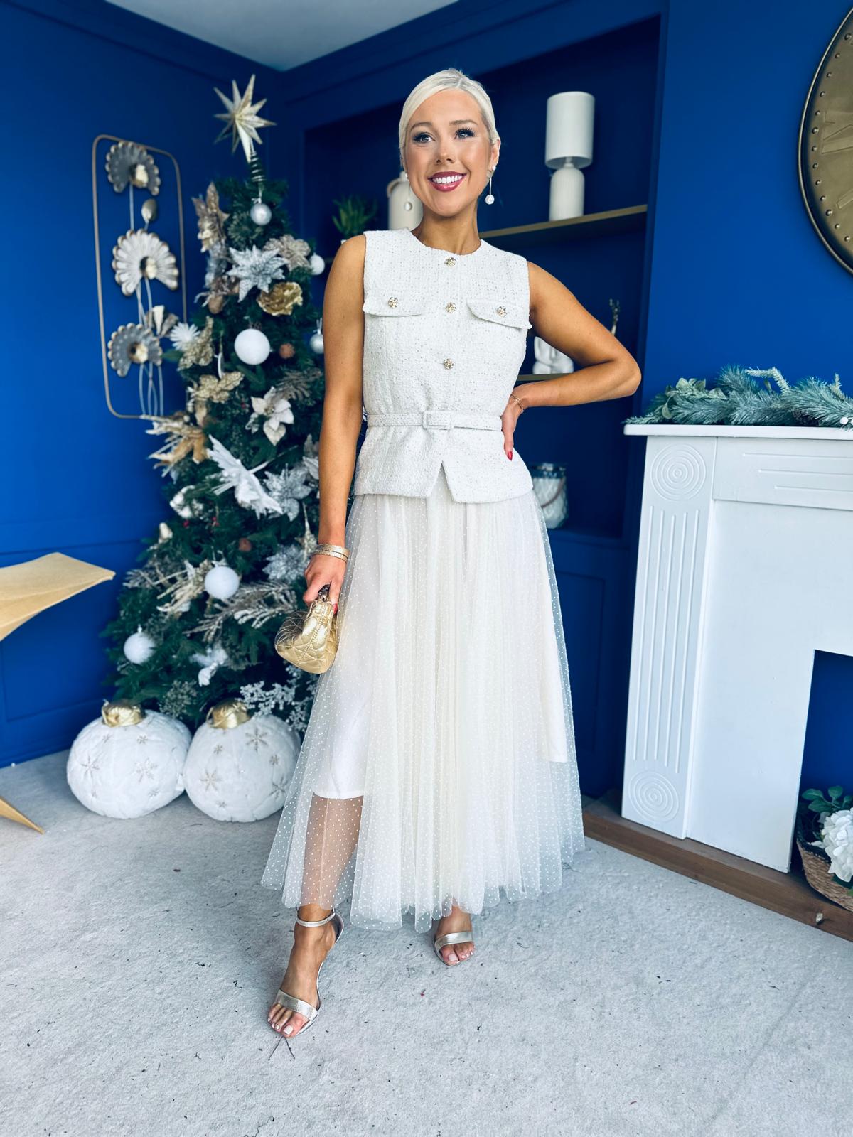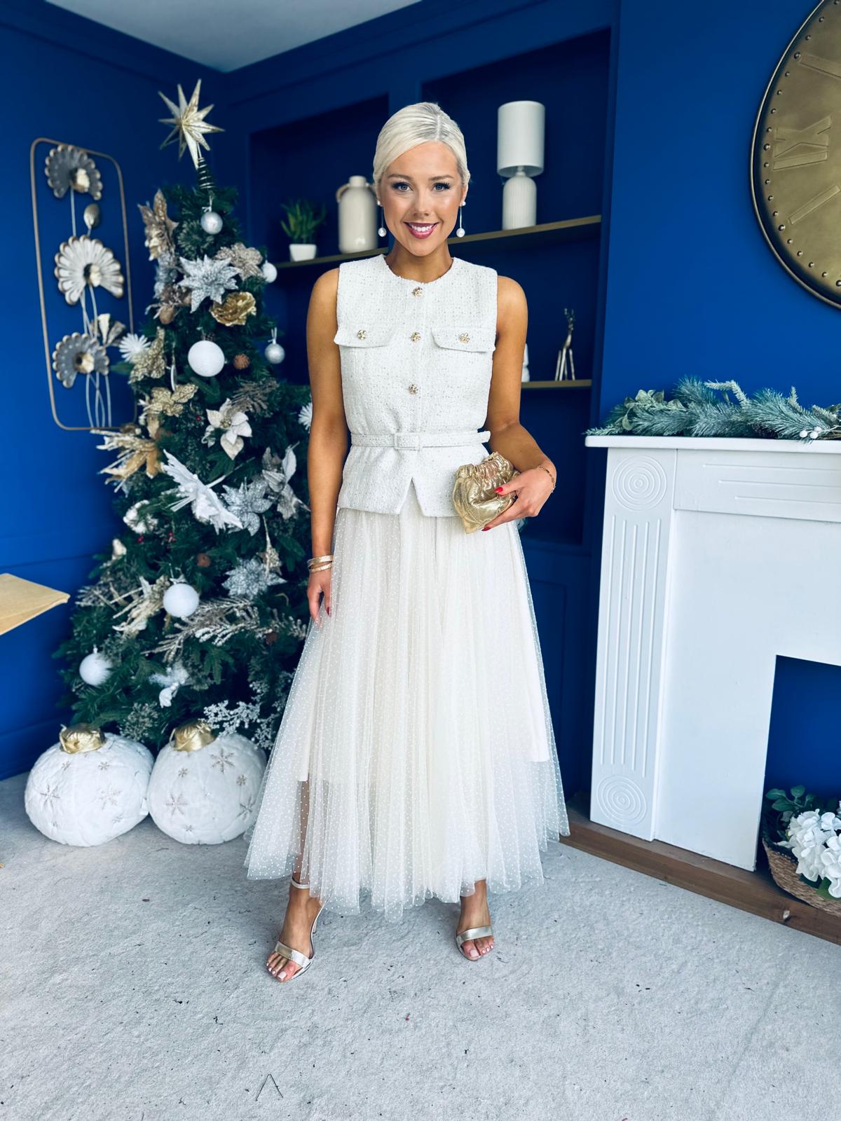 Crafted in premium tulle fabric with spotted detail, fully lined with elasticated waist🔥