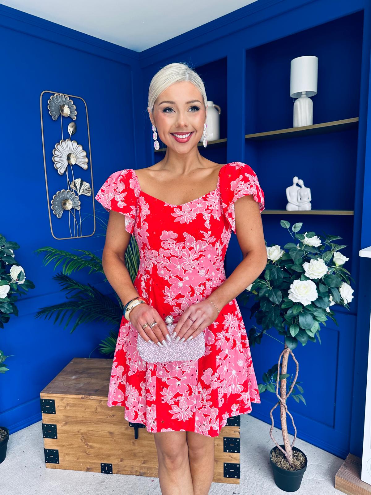 Alex Broiderie Anglais Mini Dress Pink