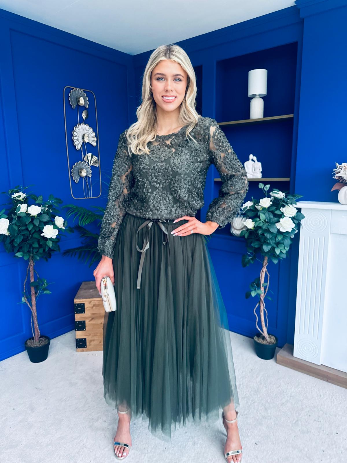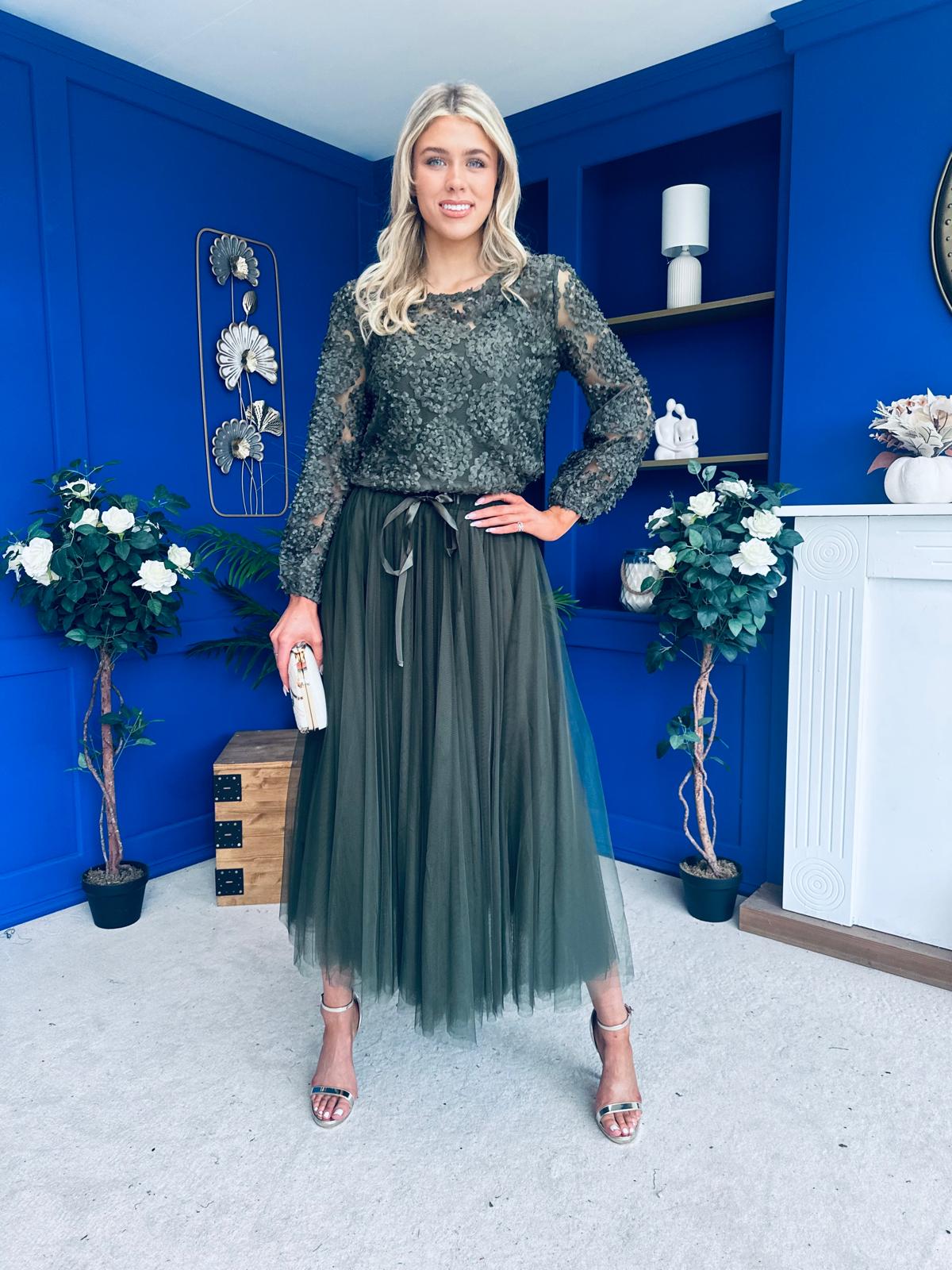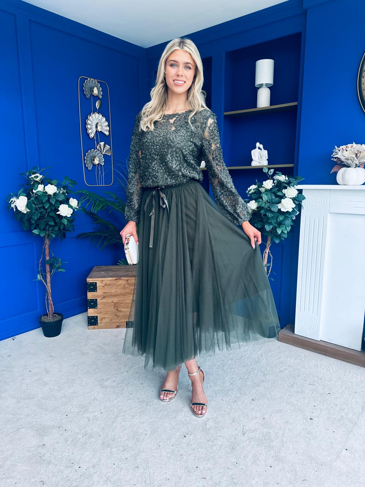 Paired here over our Sandra Knit Cami & Celine Tulle Skirt