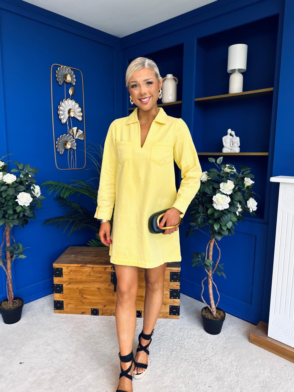 Our fabulous new denim dress with collar and button down neckline is sure to catch the eye