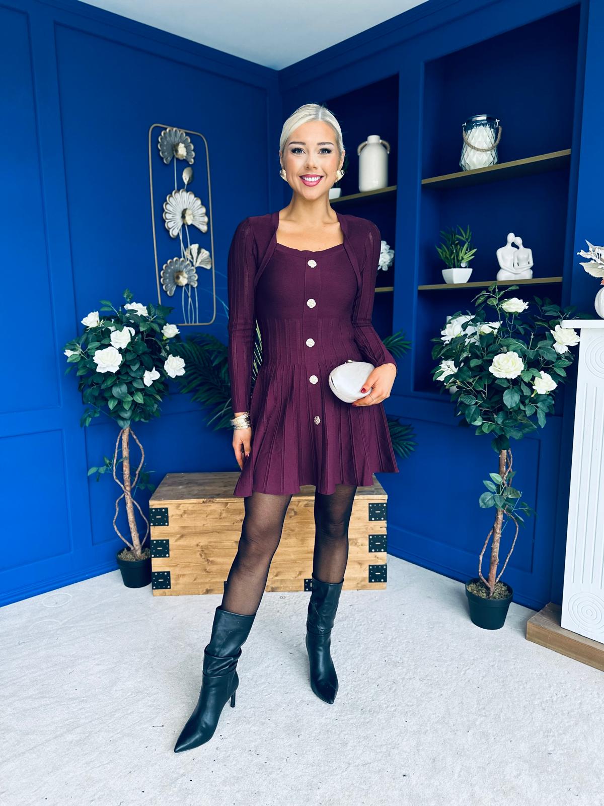 Alison Button Detail Mini Dress Plum
