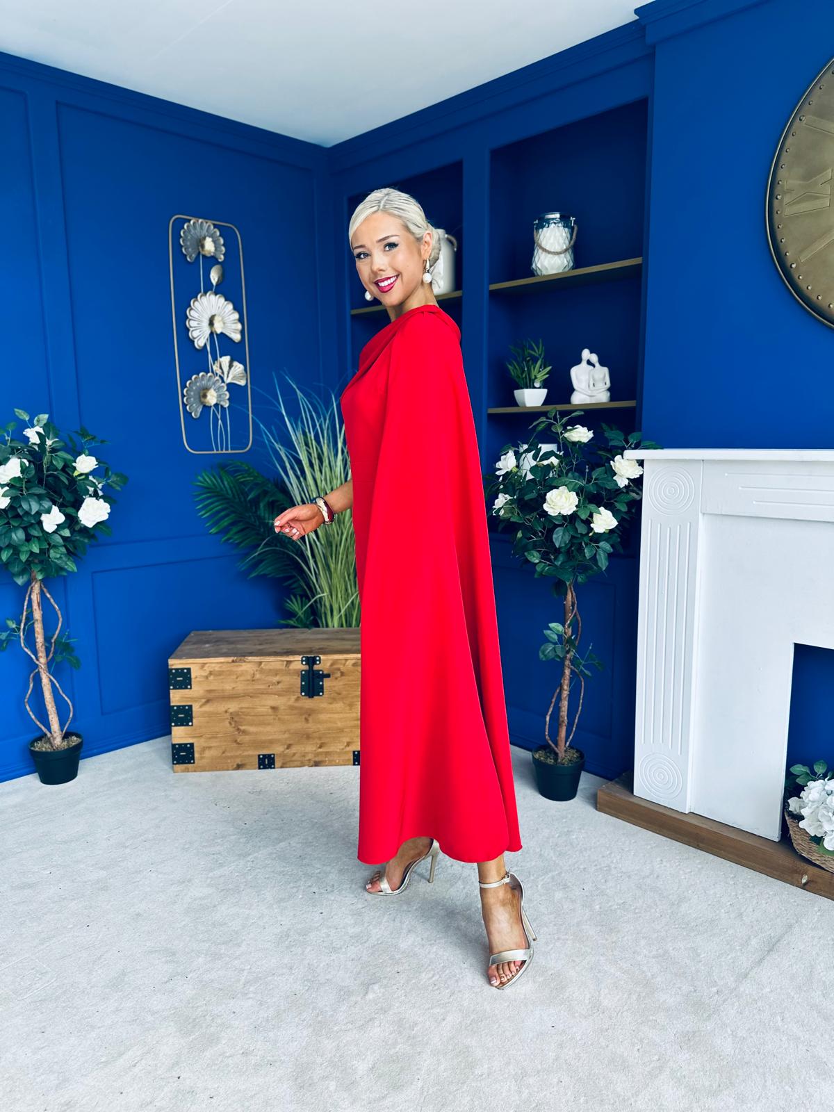 Its stand single short sleeve on one side and drape detailed sleeve on the other with a flattering bodycon skirt, this dress is a must have this season.