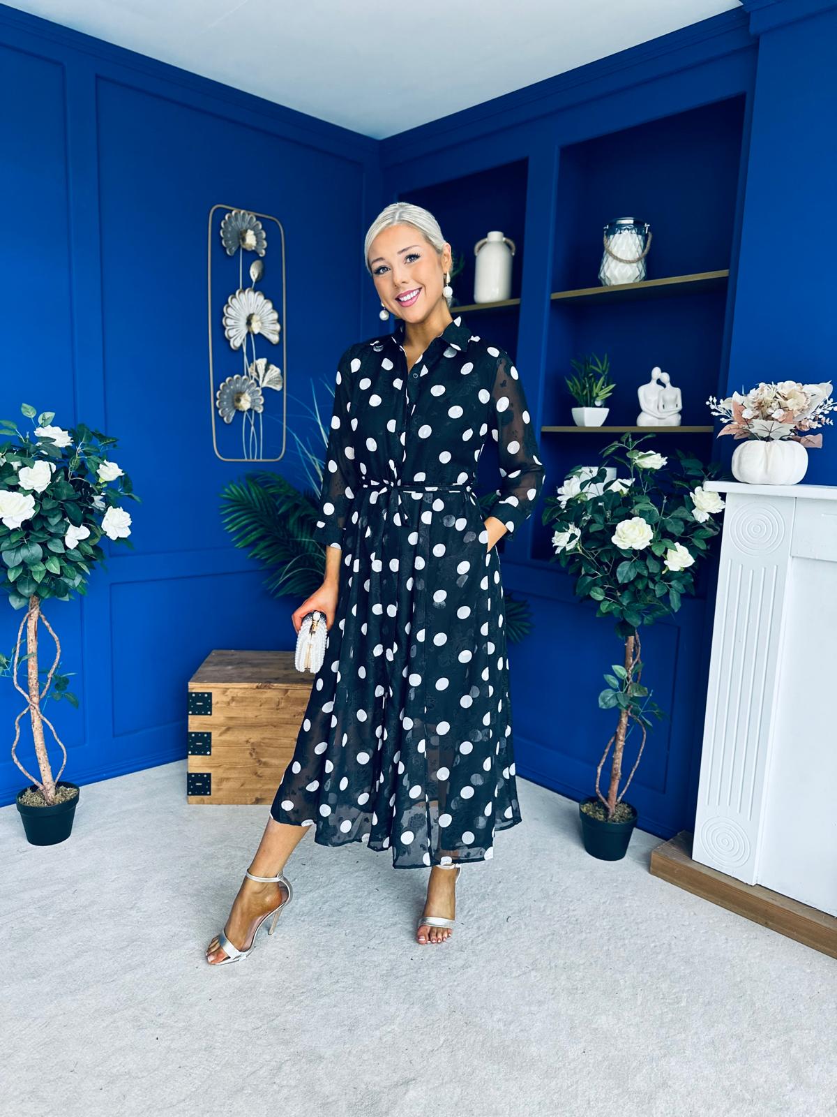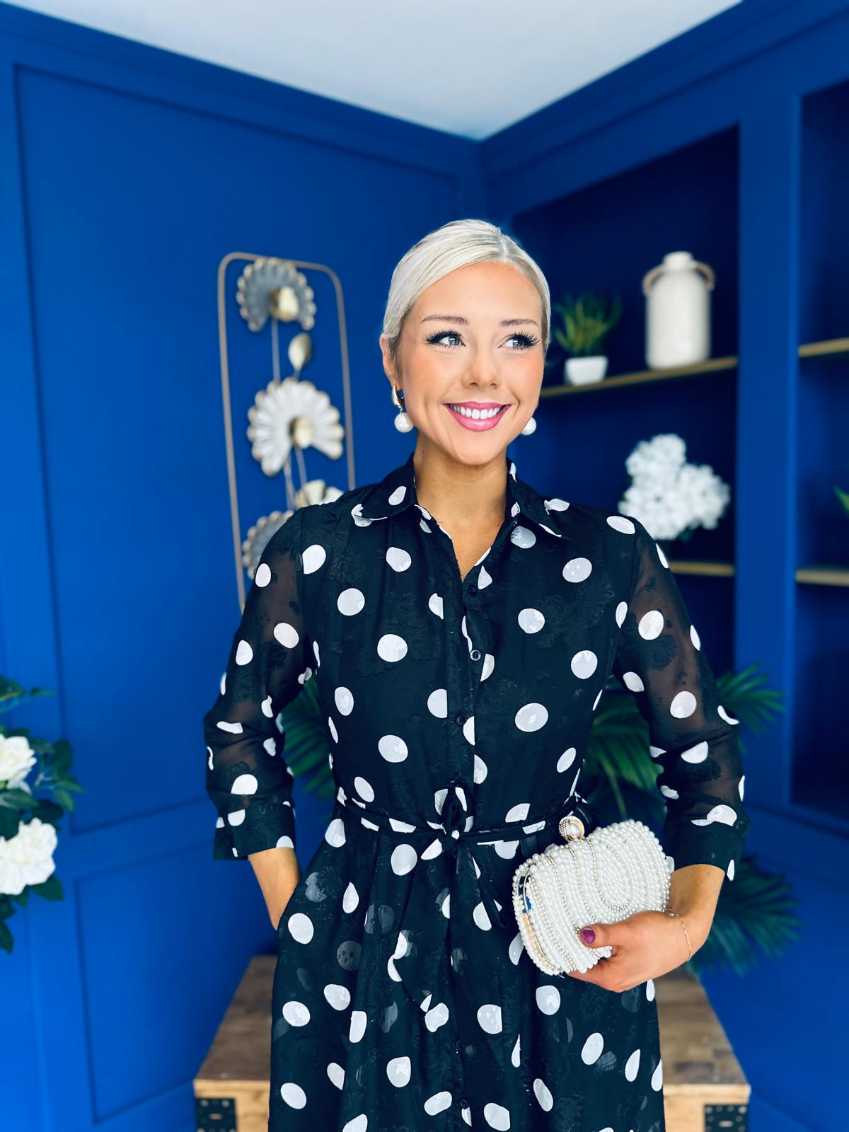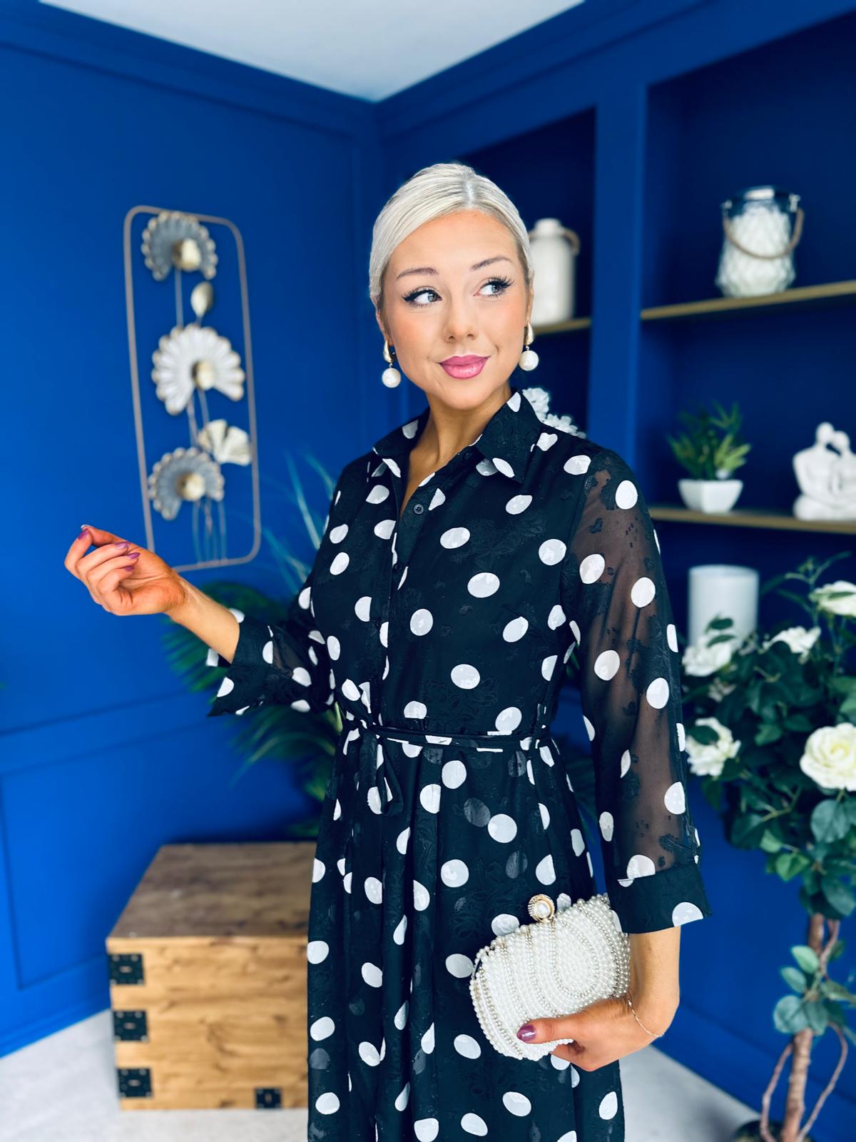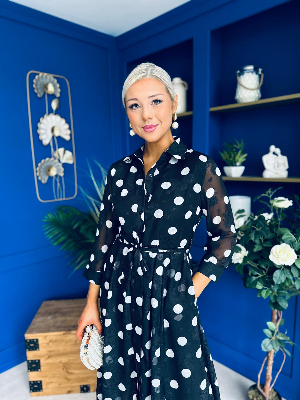 Angela Long Sleeve Maxi Shirt Dress Spot Burnout Black