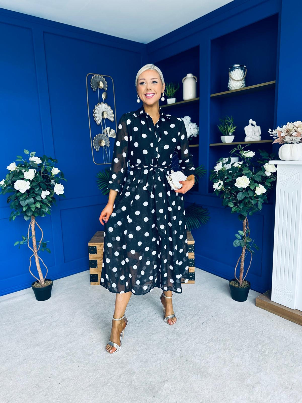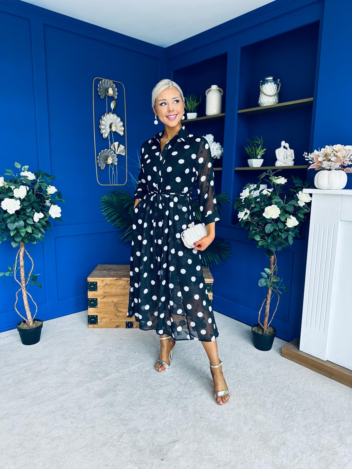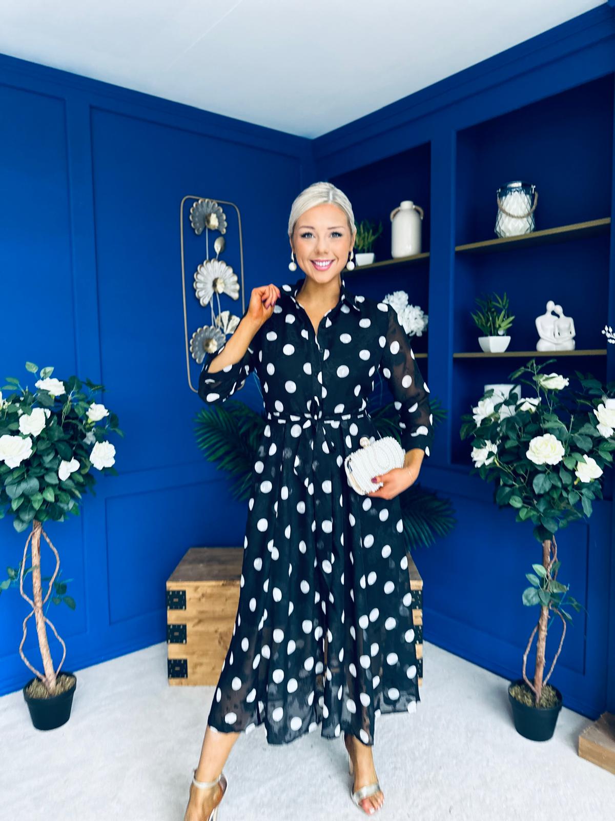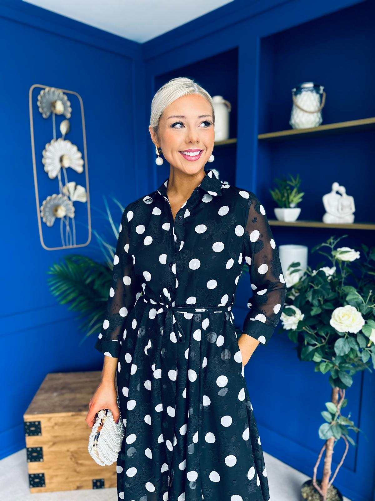 Angela Long Sleeve Maxi Shirt Dress Spot Burnout Black