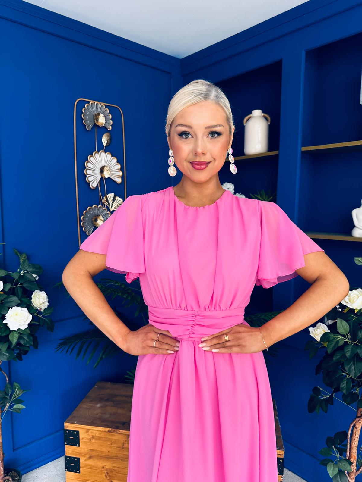 Aoibhinn Gathered Detail Midi Dress Cerise