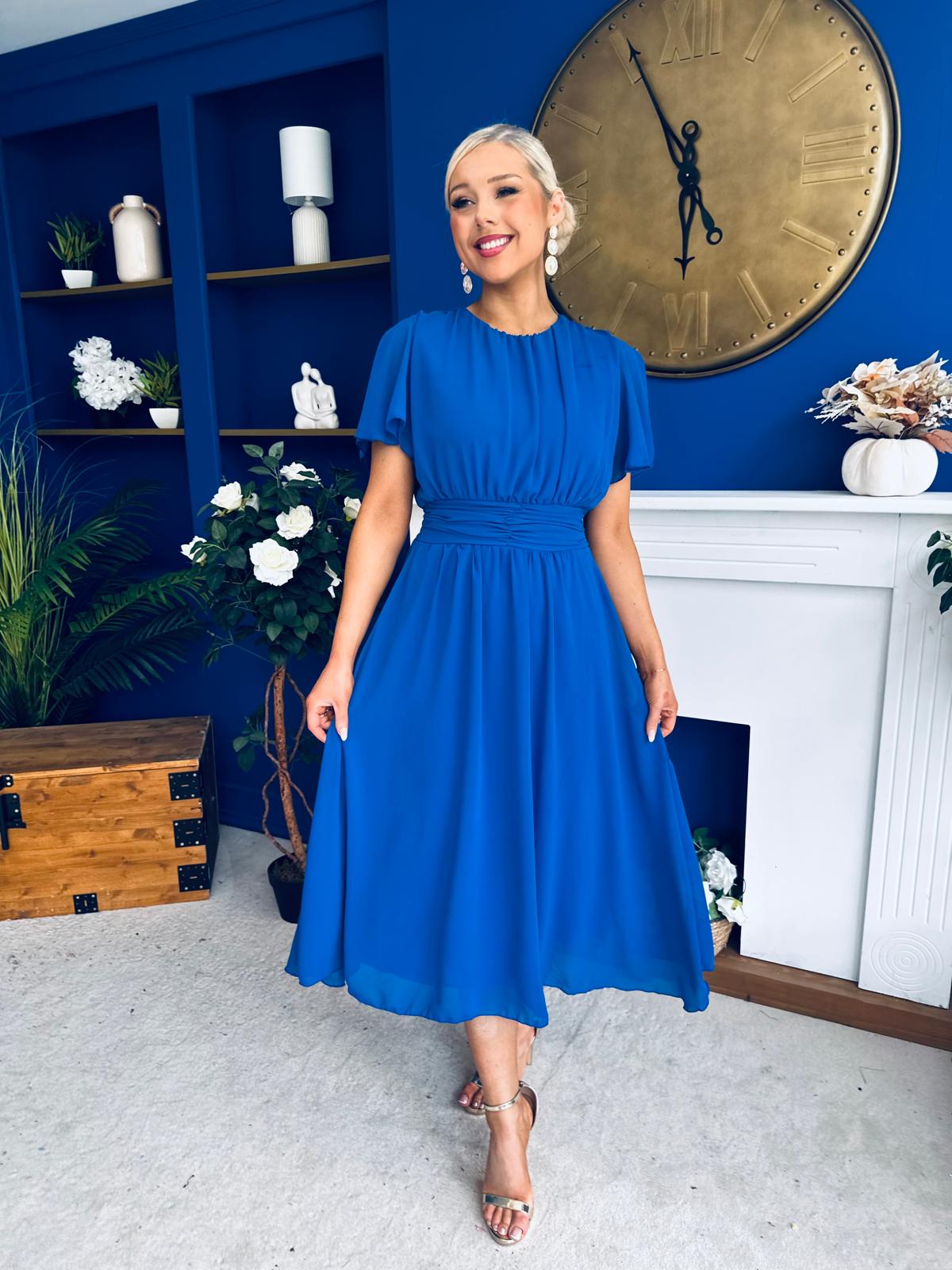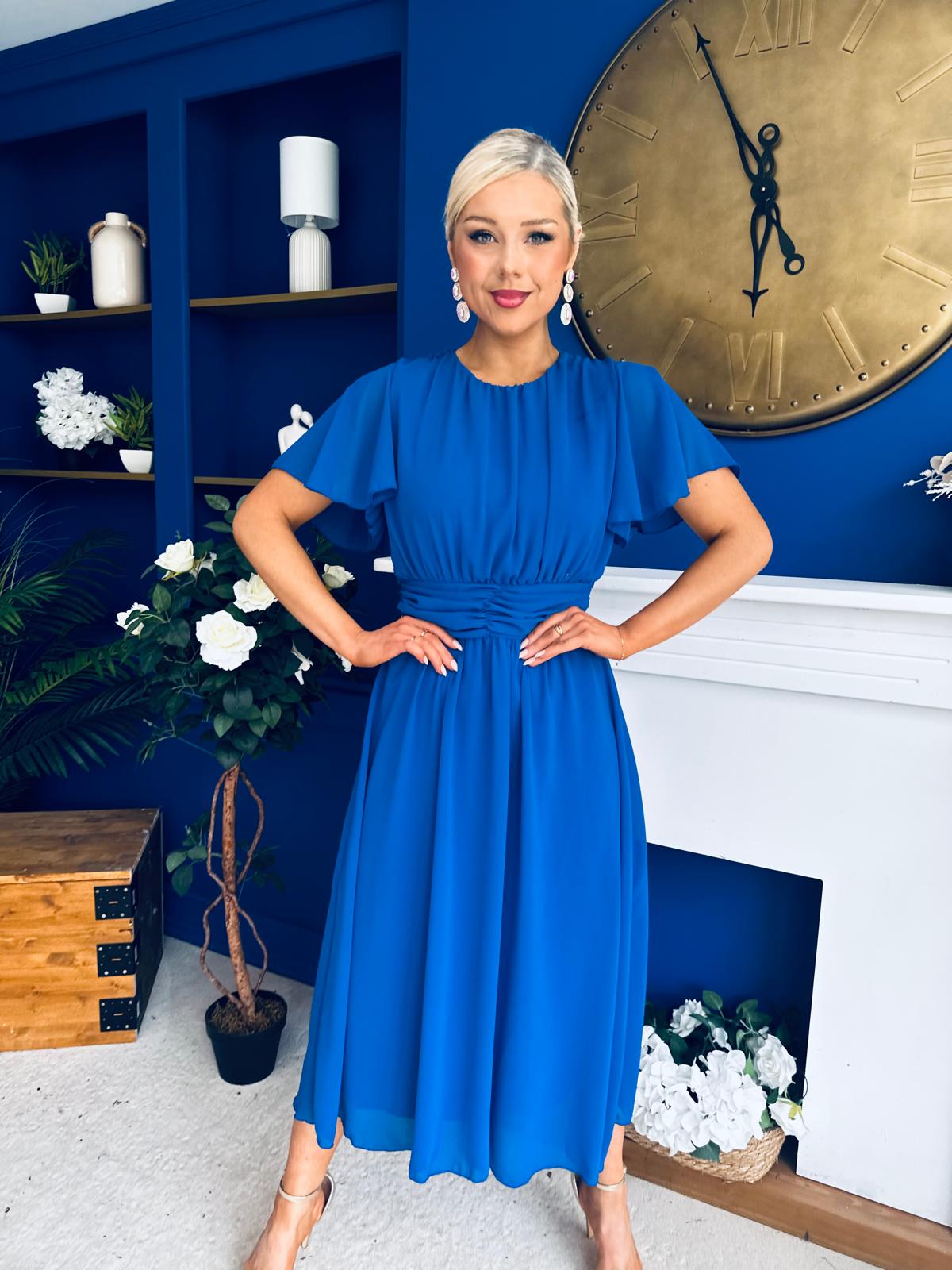Aoibhinn Gathered Detail Midi Dress Cobalt