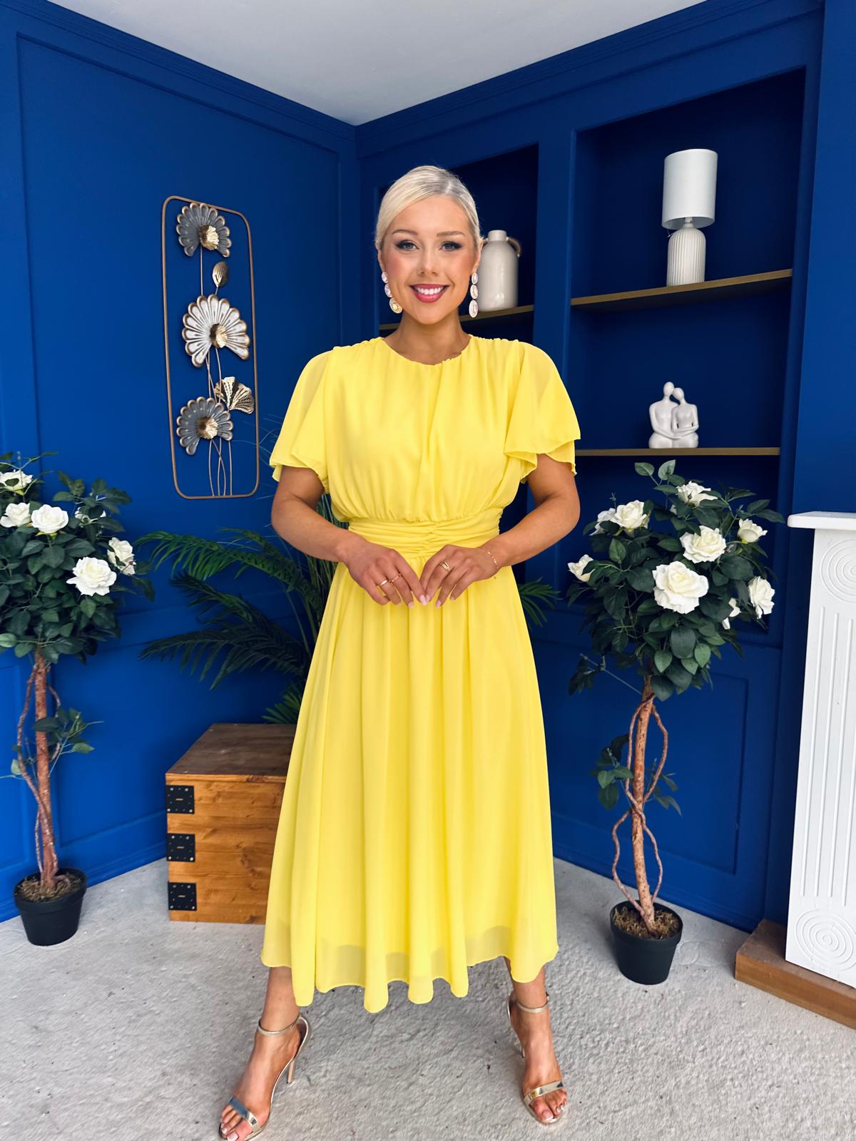 Aoibhinn Gathered Detail Midi Dress Yellow