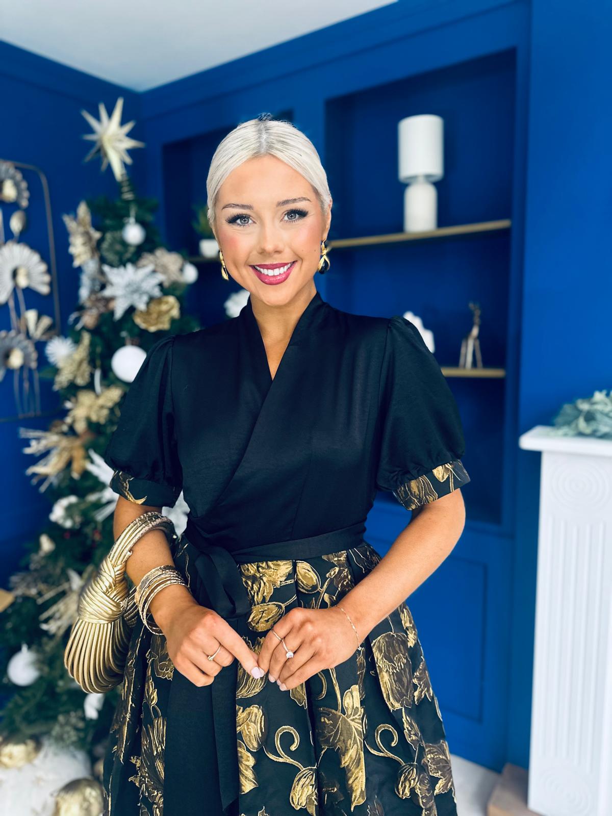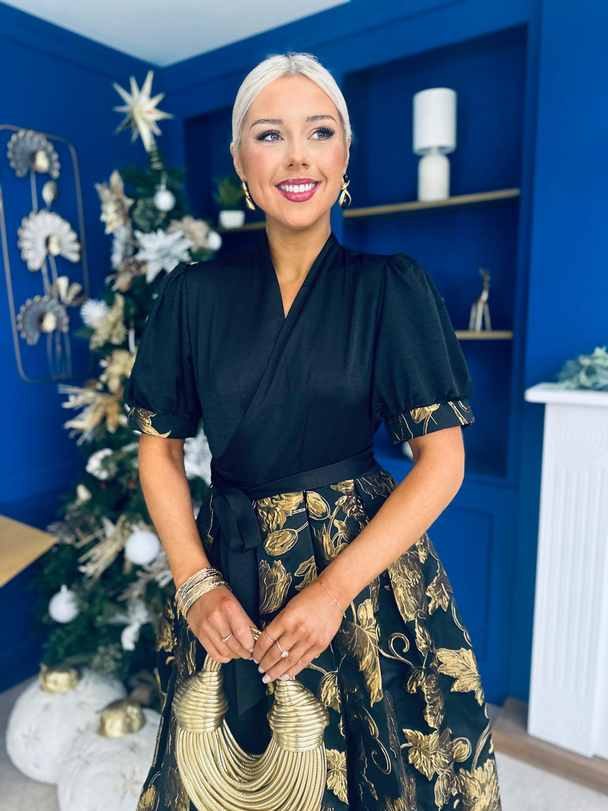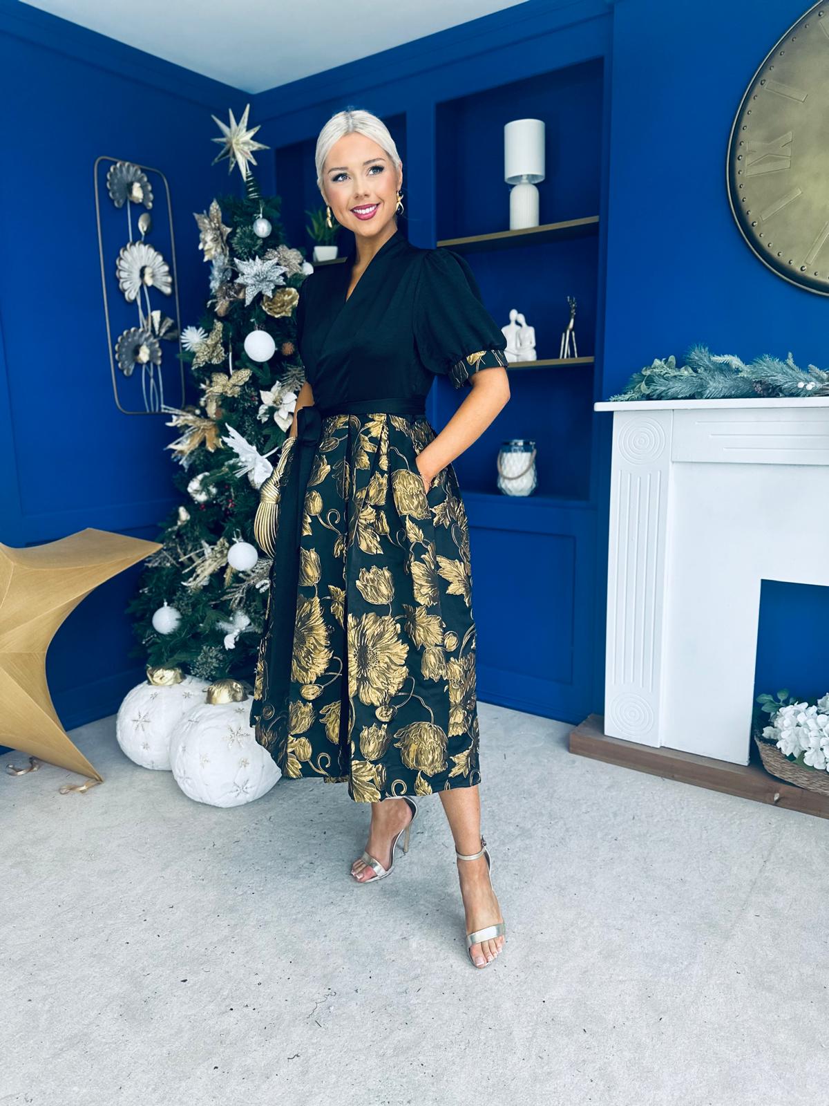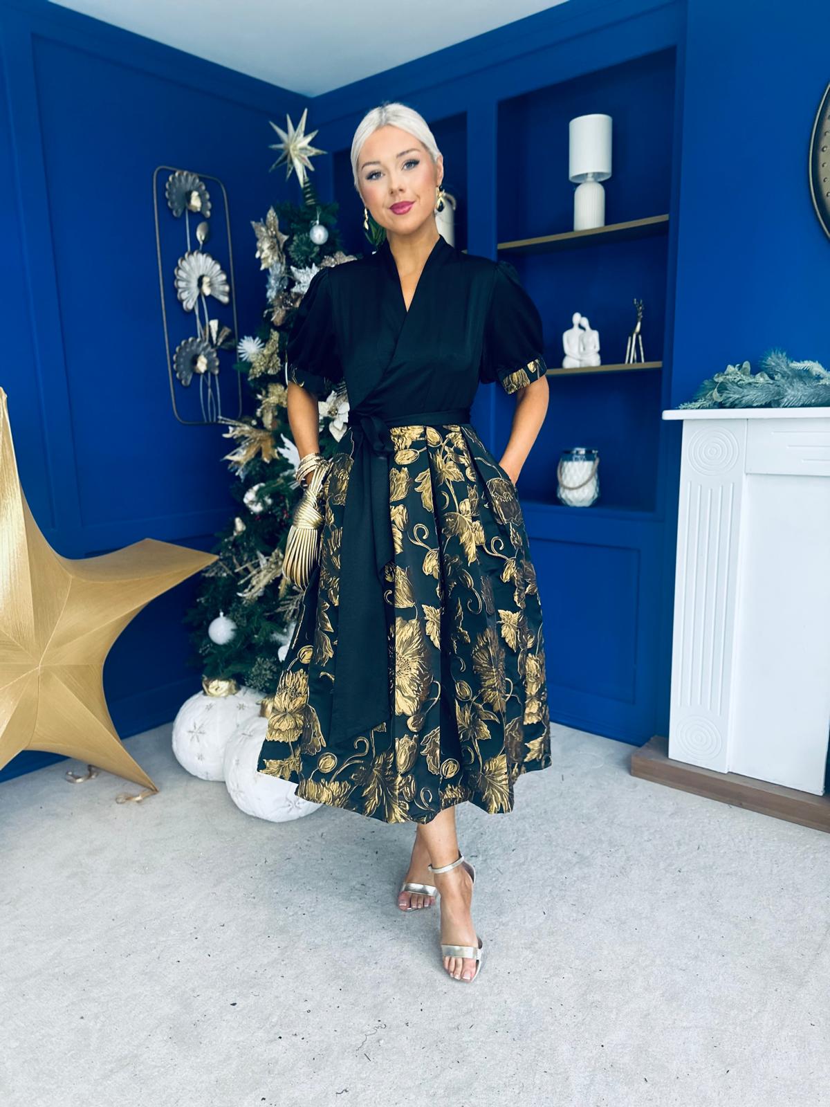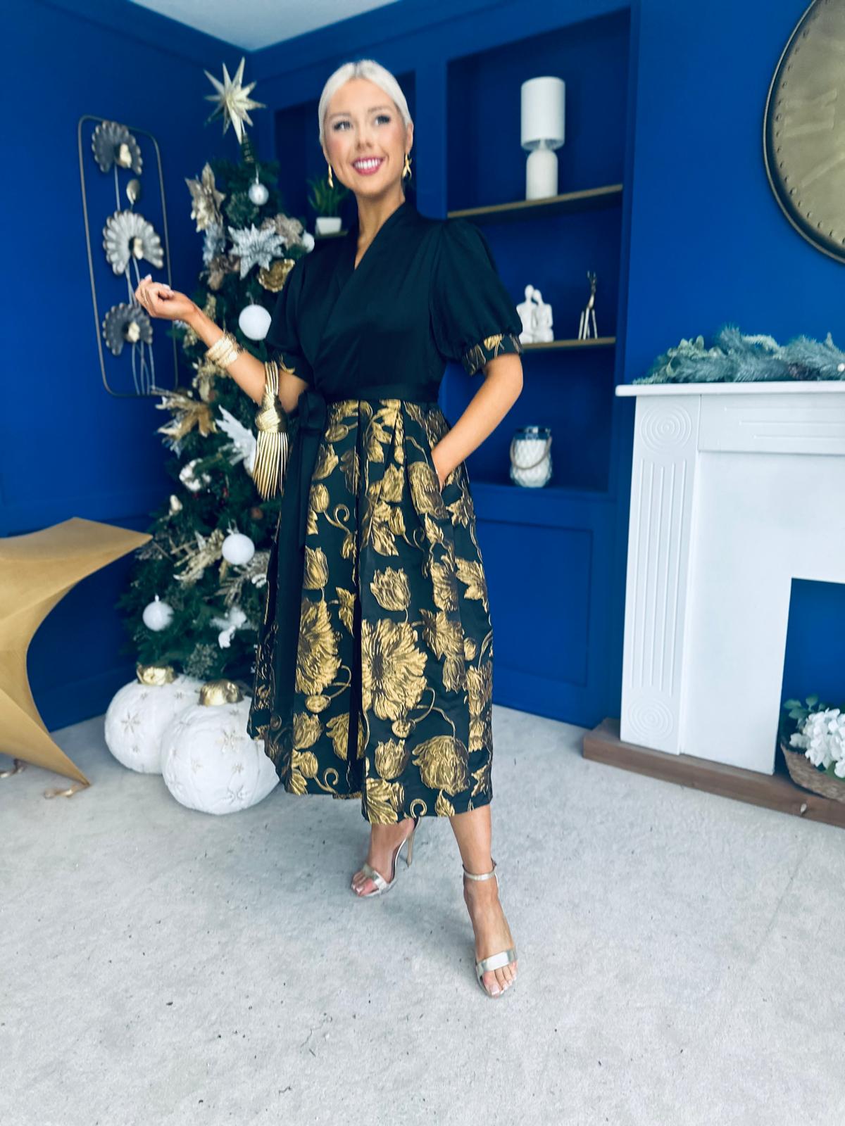 Aoife Jaquard Occasion Wrap Dress Gold