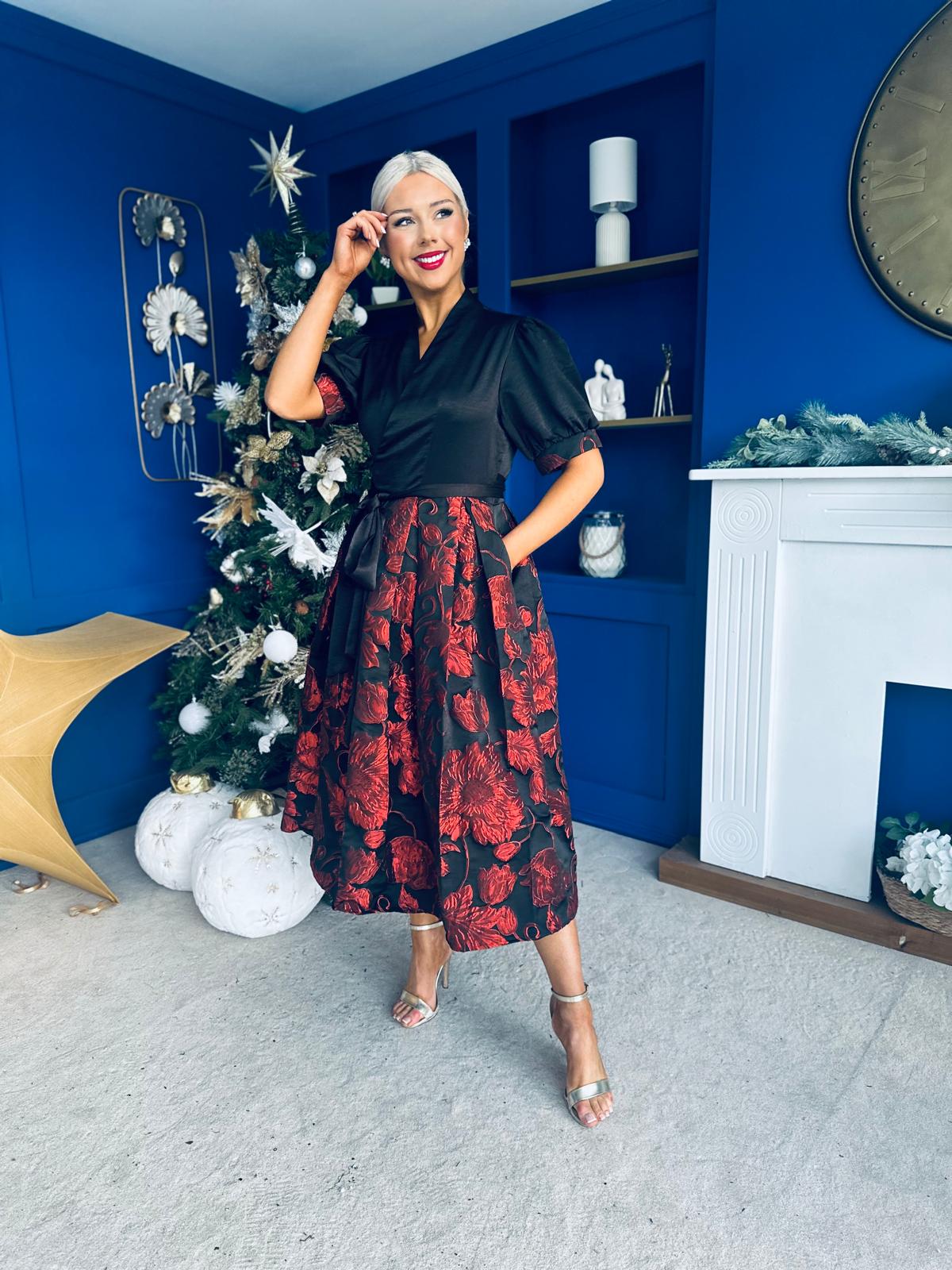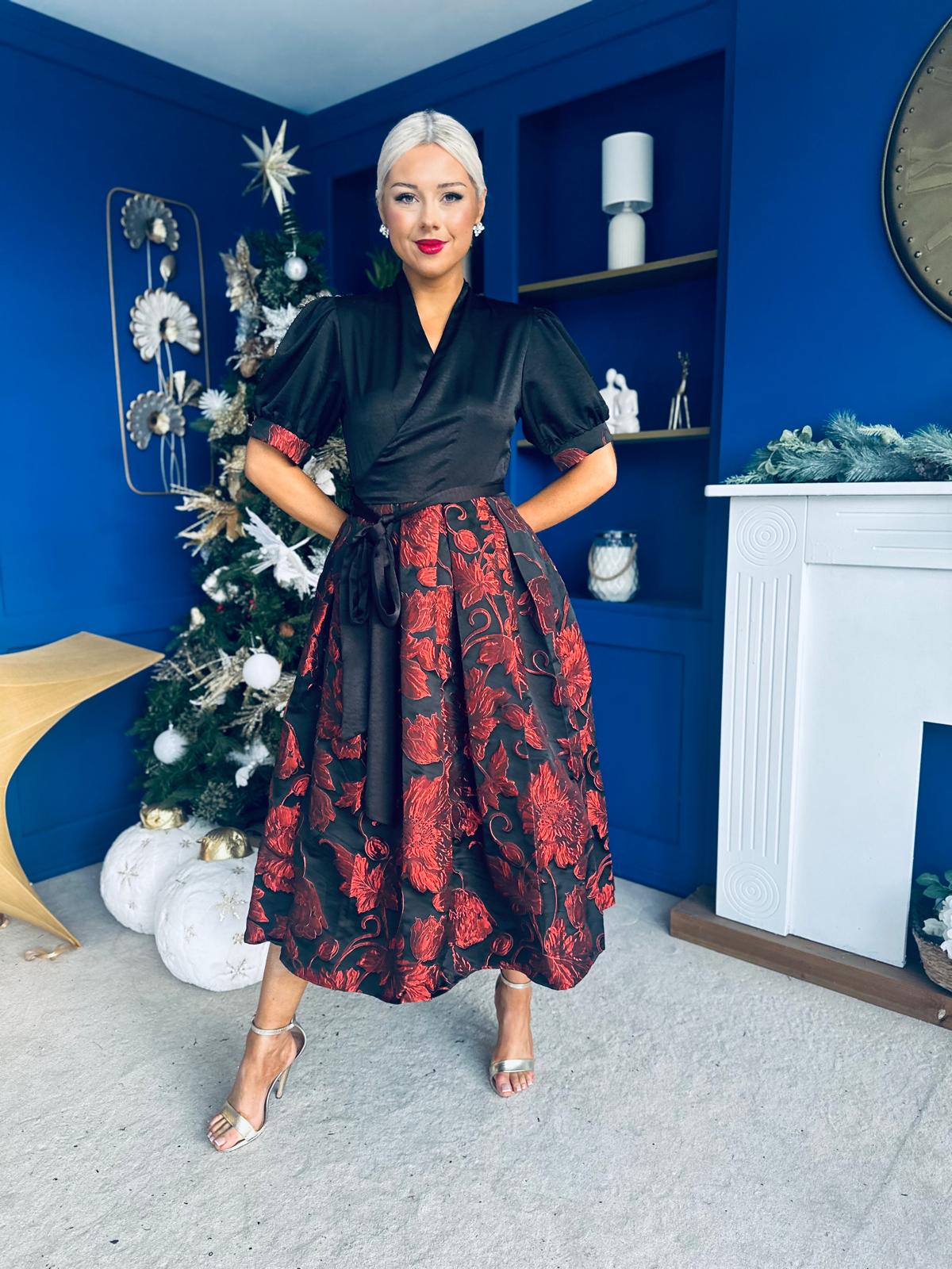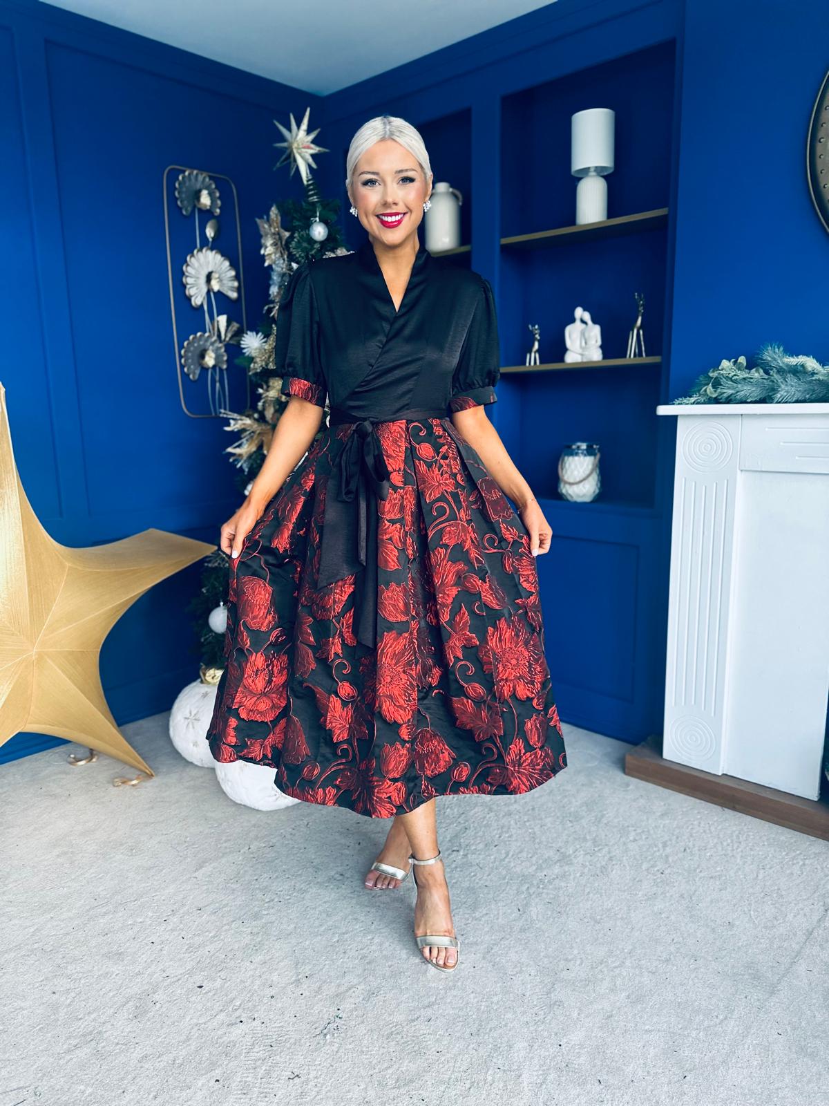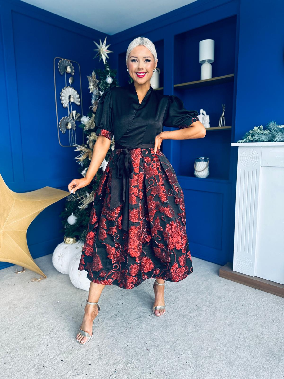 Aoife Jaquard Occasion Wrap Dress Red