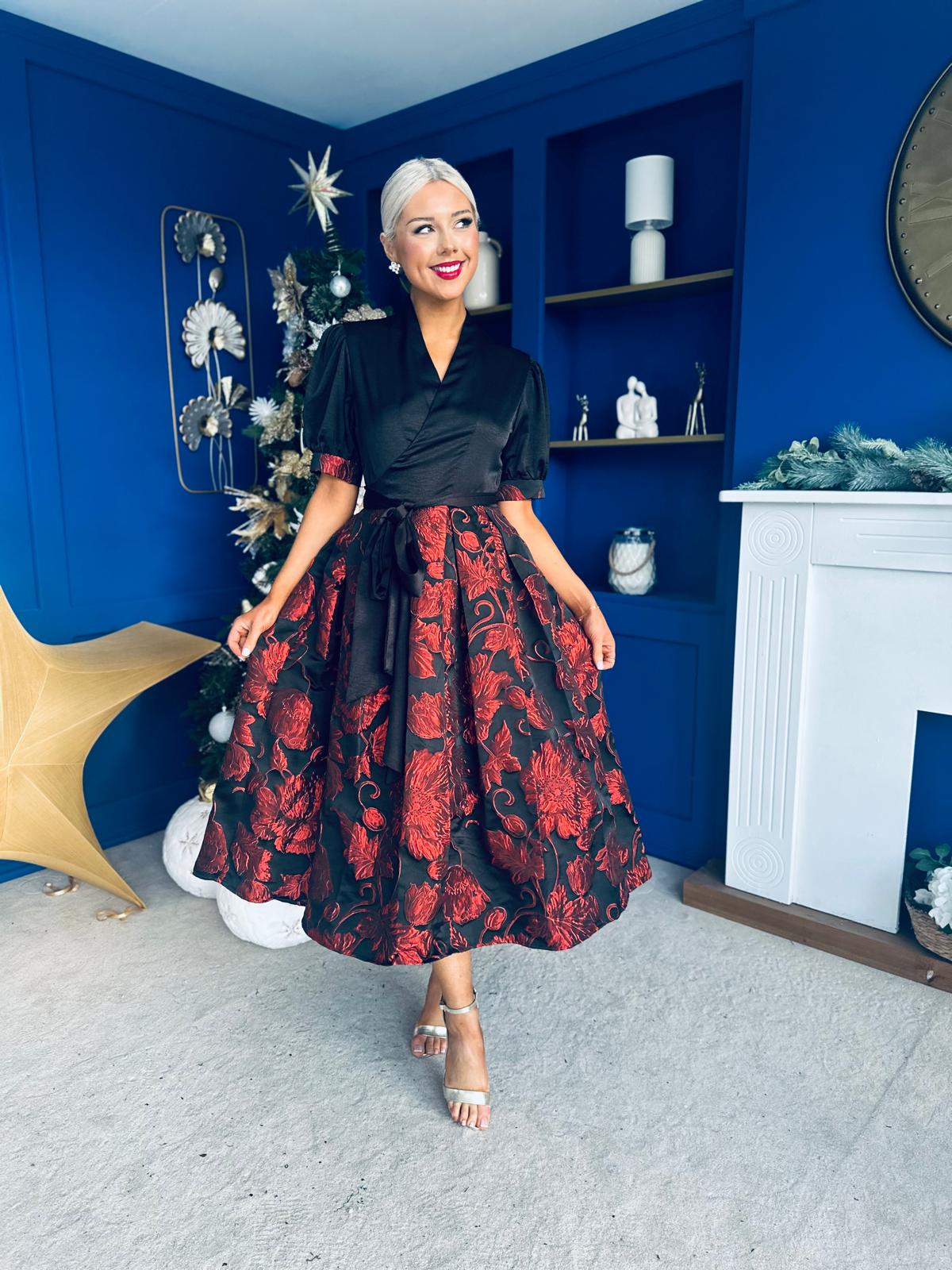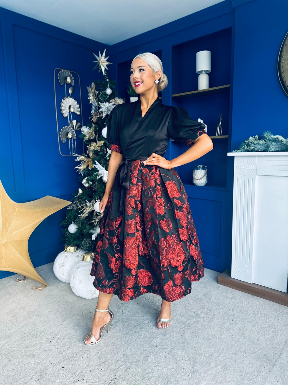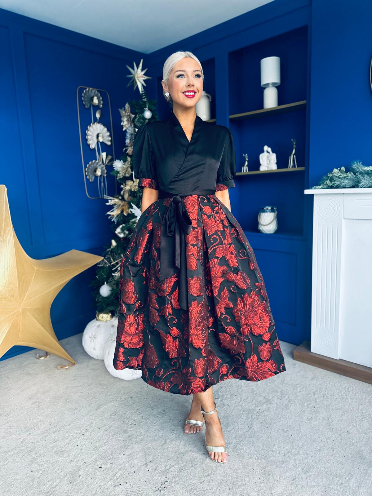 Aoife Jaquard Occasion Wrap Dress Red