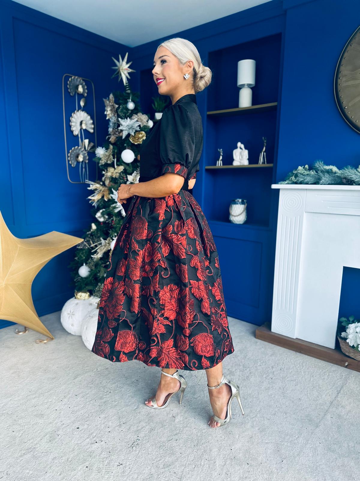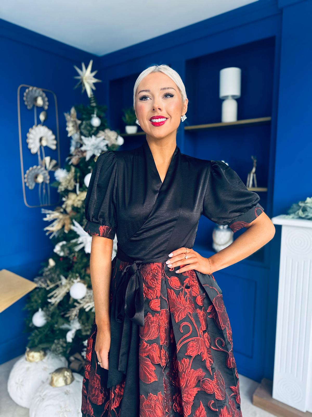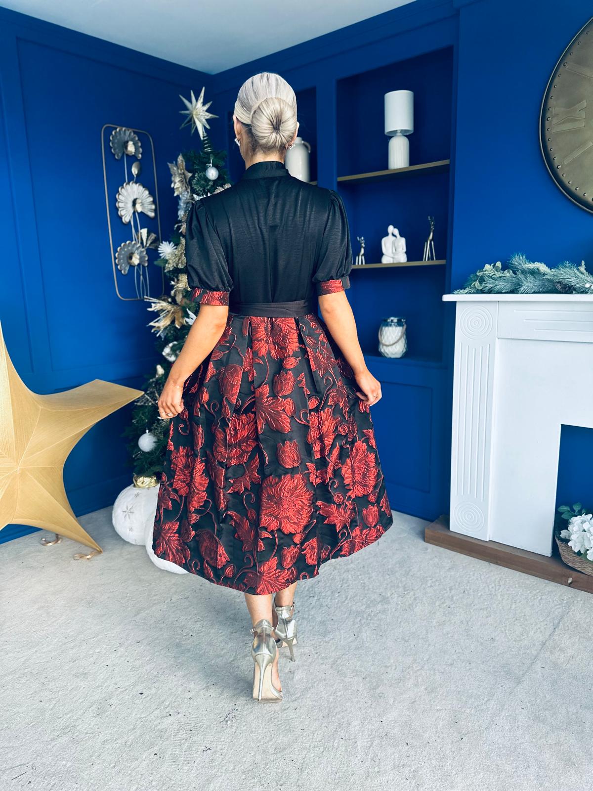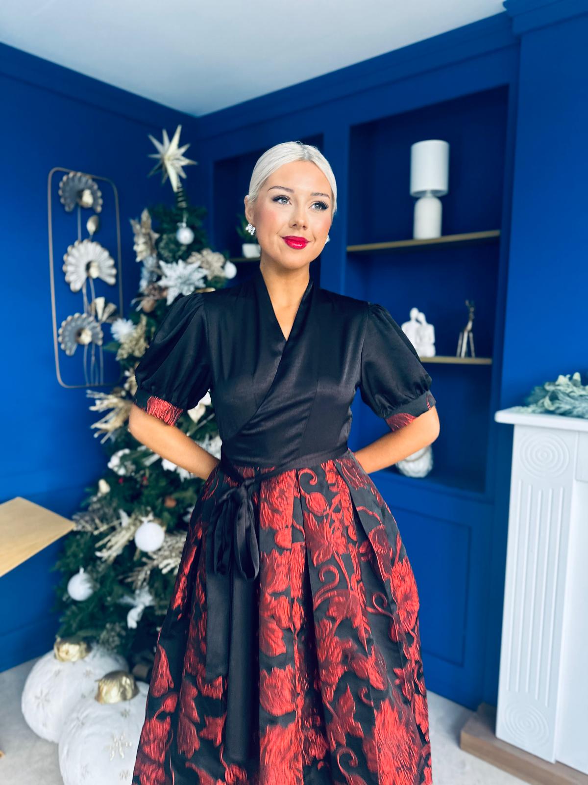 Aoife Jaquard Occasion Wrap Dress Red
