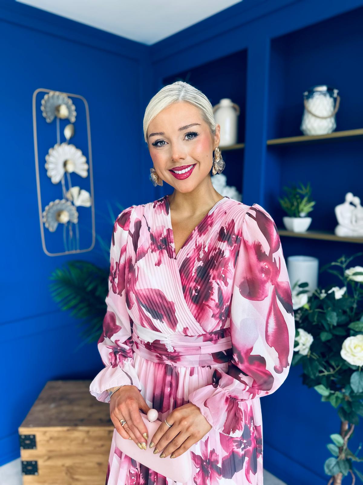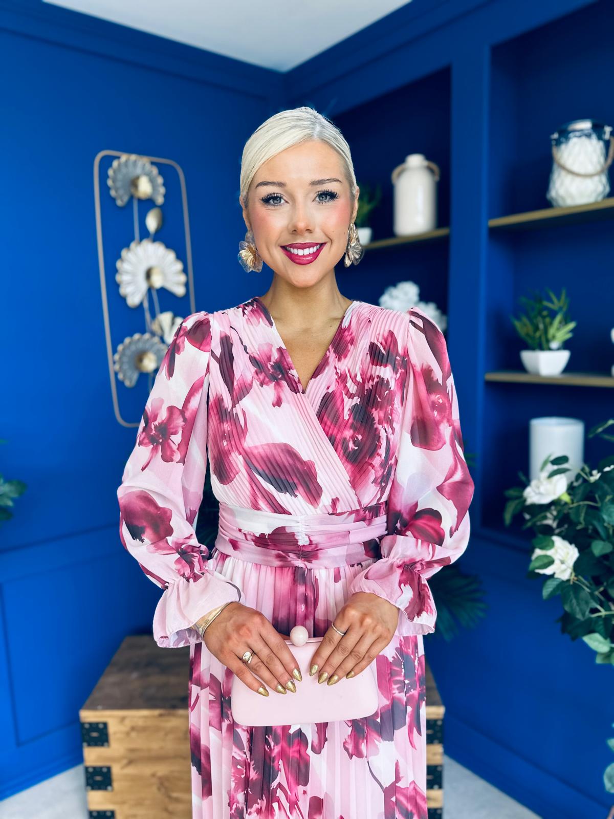 Bailey Pleated Midi Dress Floral Wine