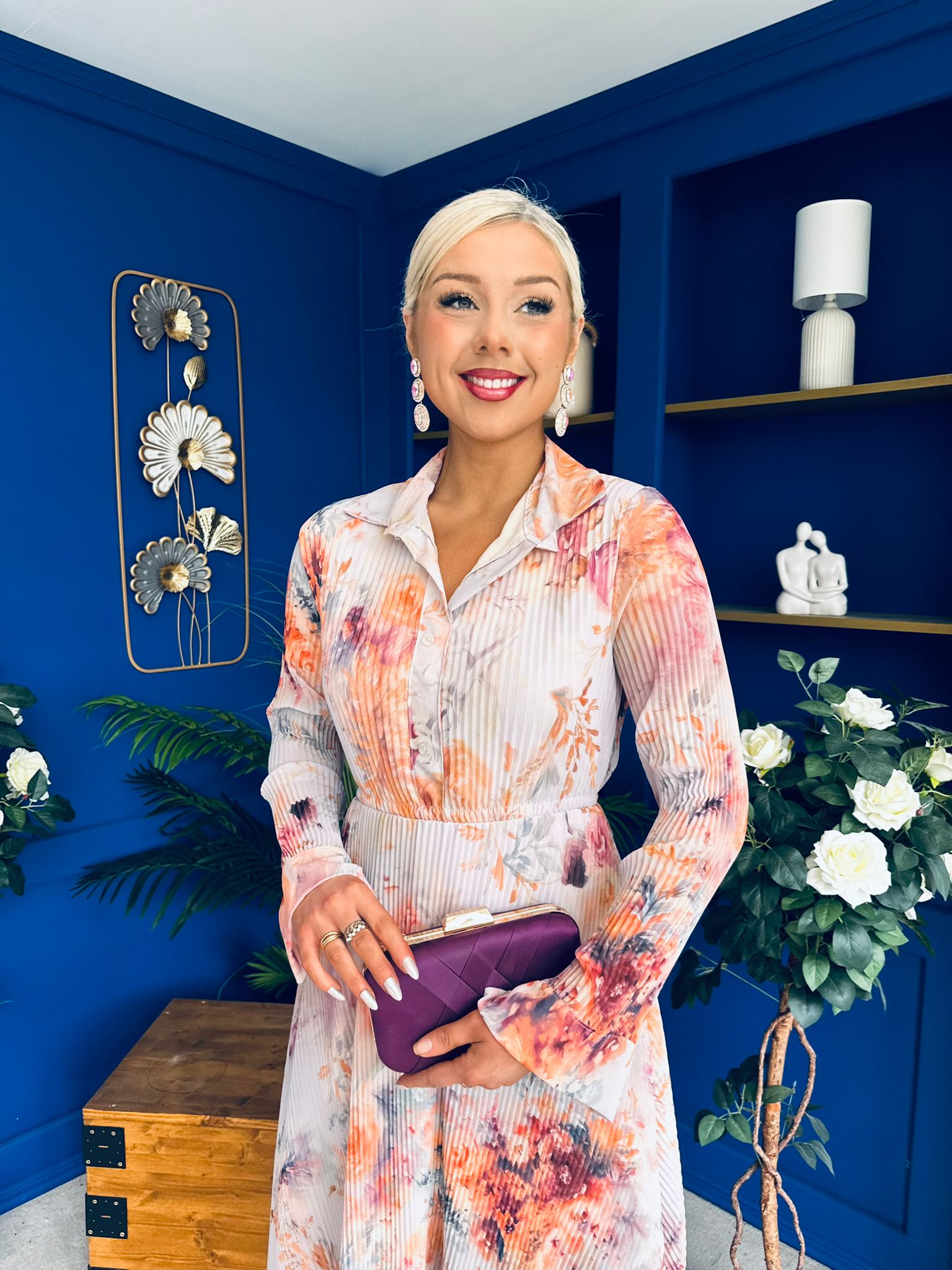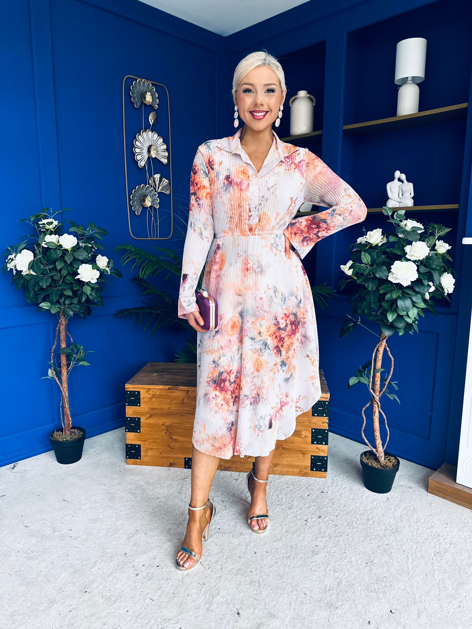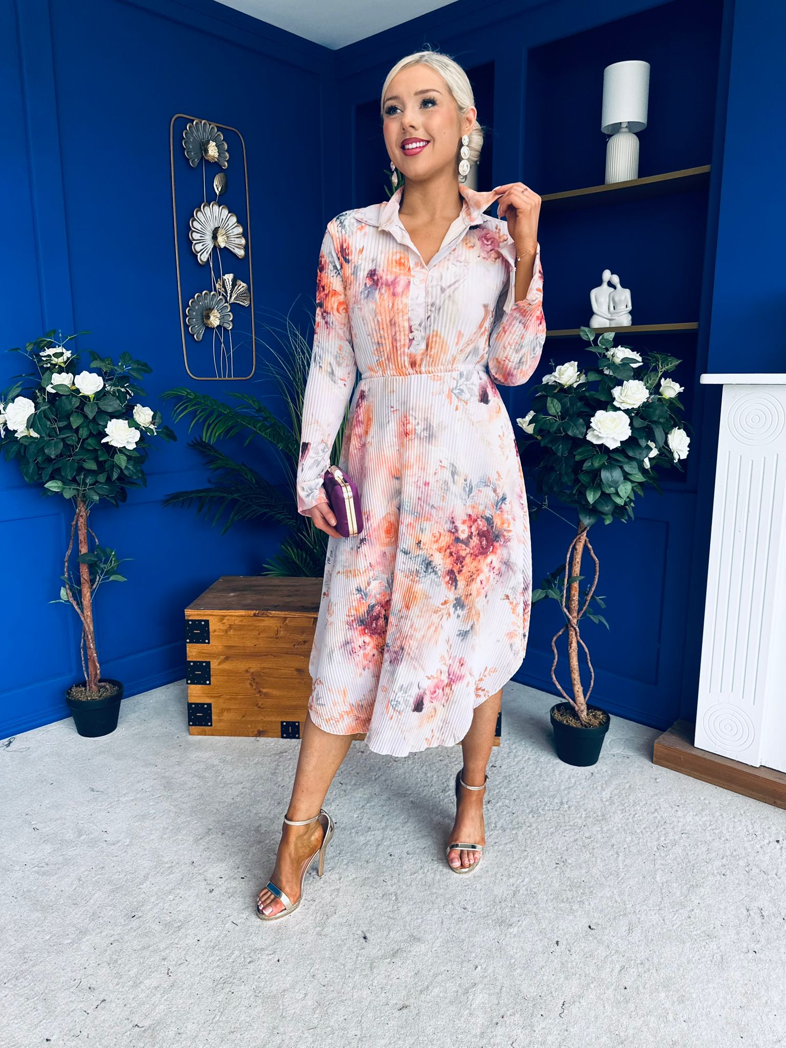 Blaire Detailed Plisse Midi Dress Floral Pastel