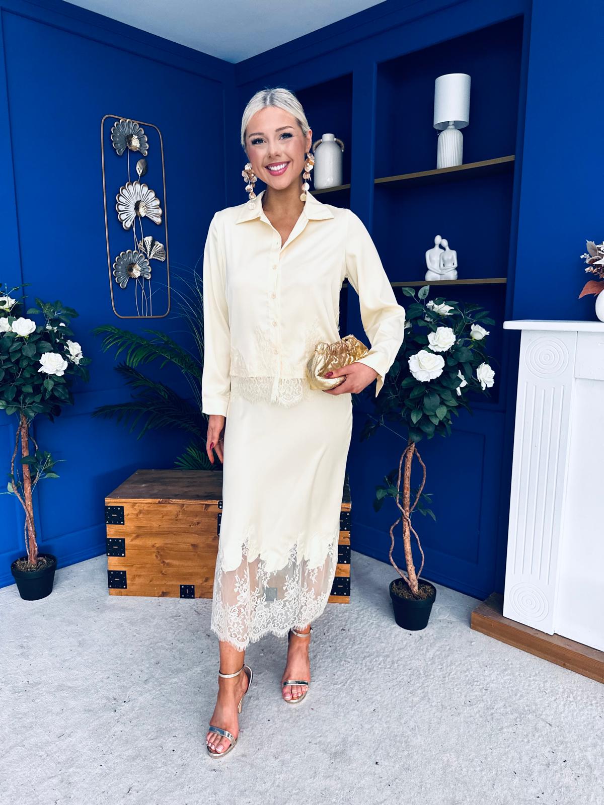 Bonnie Lace Detail Shirt & Skirt Set Yellow