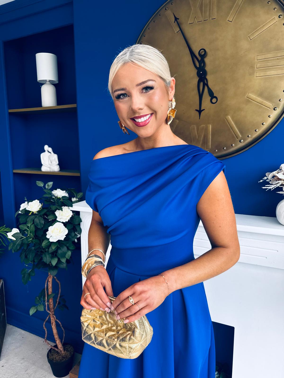 Breffy Asymmetric Neckline Skater Midi Cobalt Pre Order 26 Feb