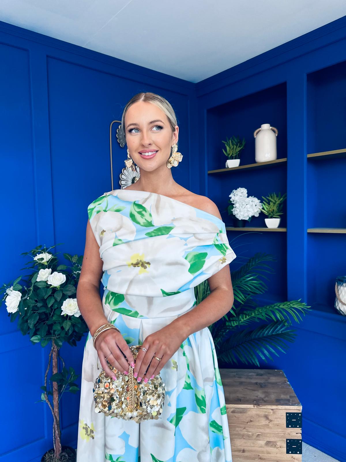Breffy Asymmetric Neckline Skater Midi Floral Green