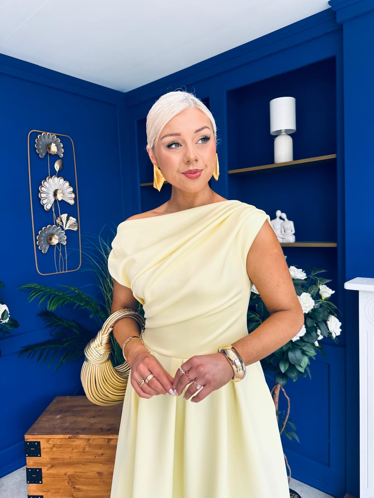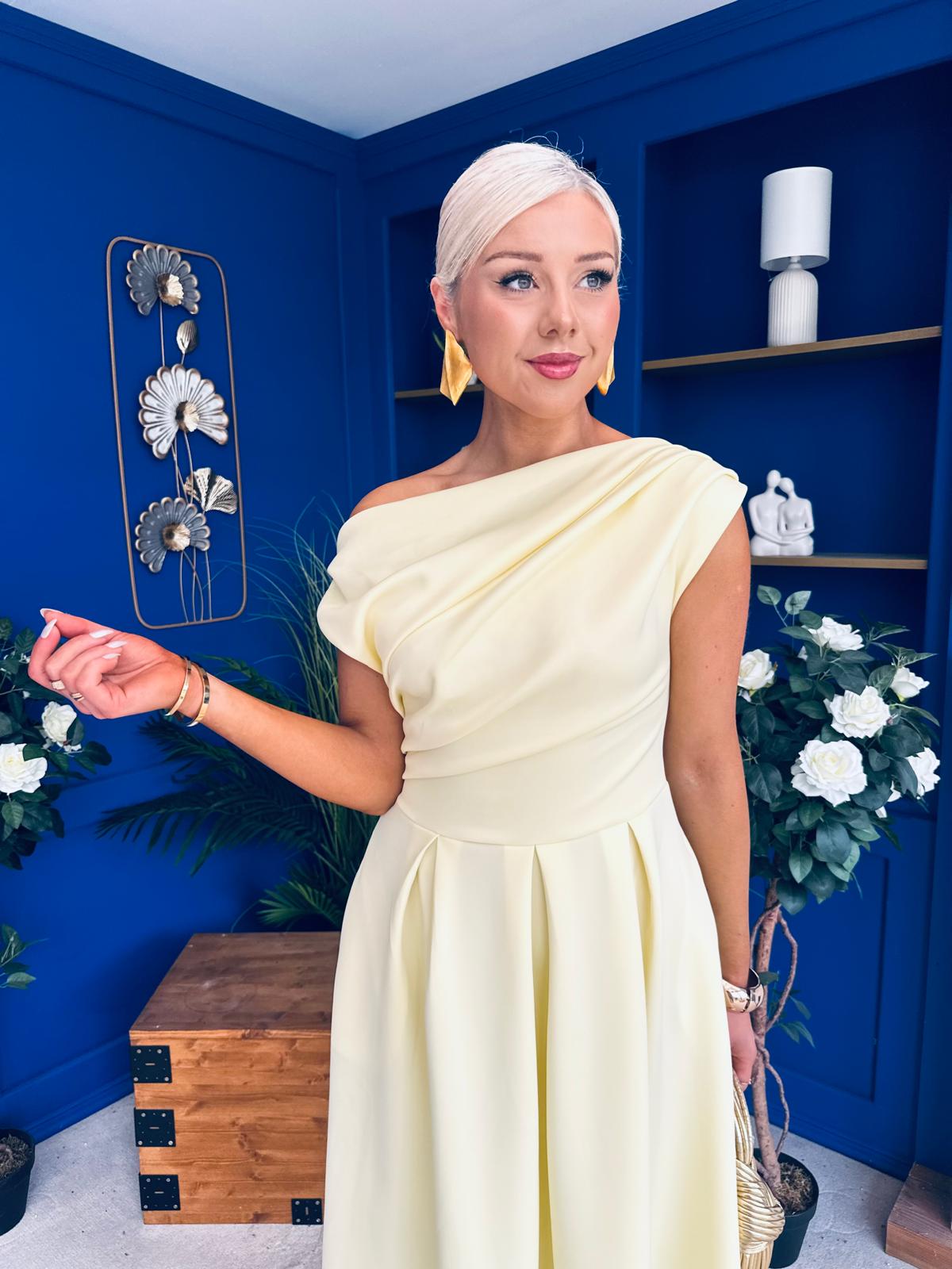 Breffy Asymmetric Neckline Skater Midi Yellow
