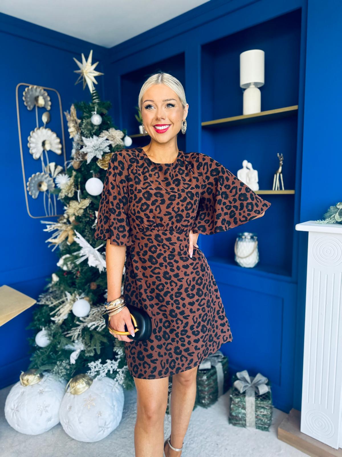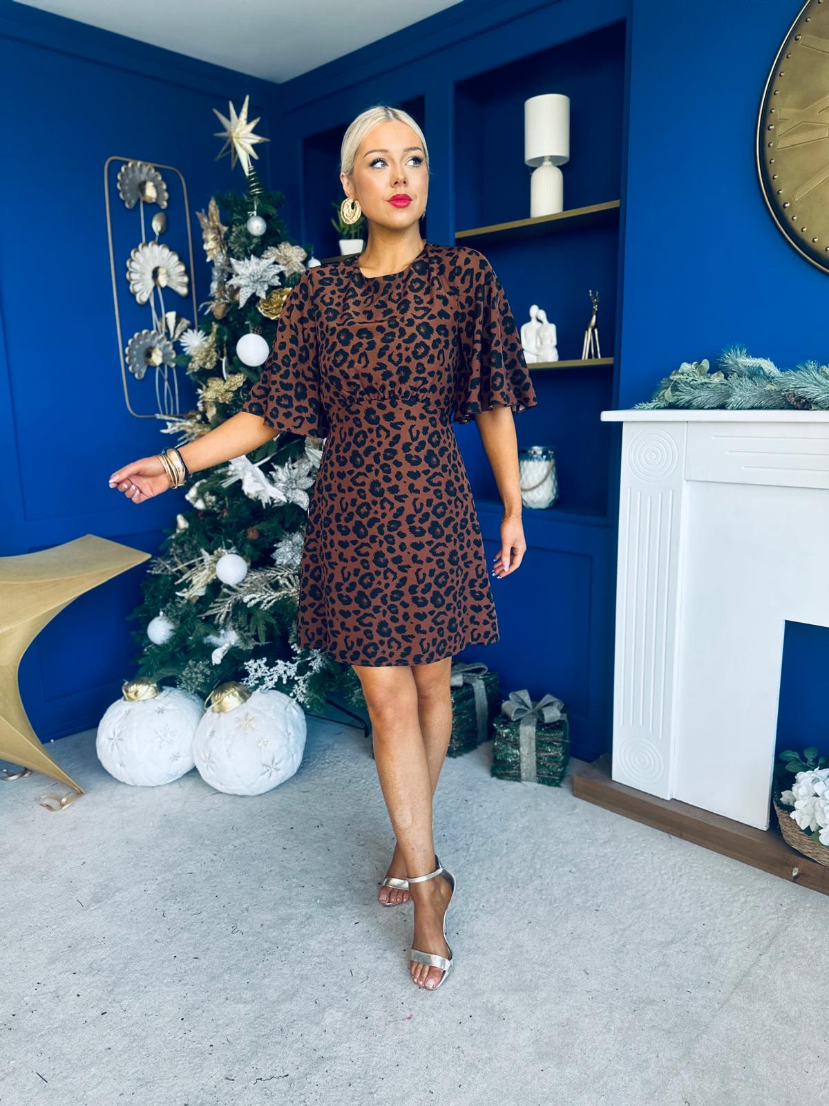 Britney Animal Angel Sleeve Mini Dress Coco
