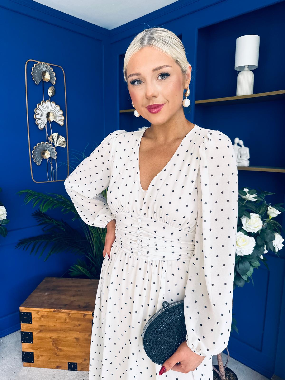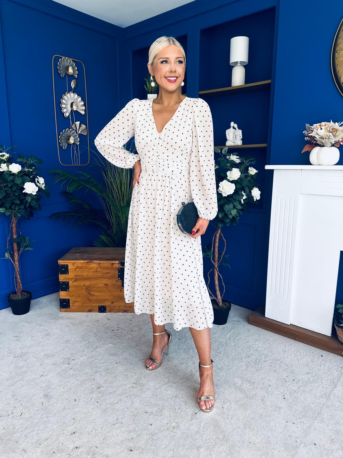 Bronagh Banded Midi Dress Polka Cream
