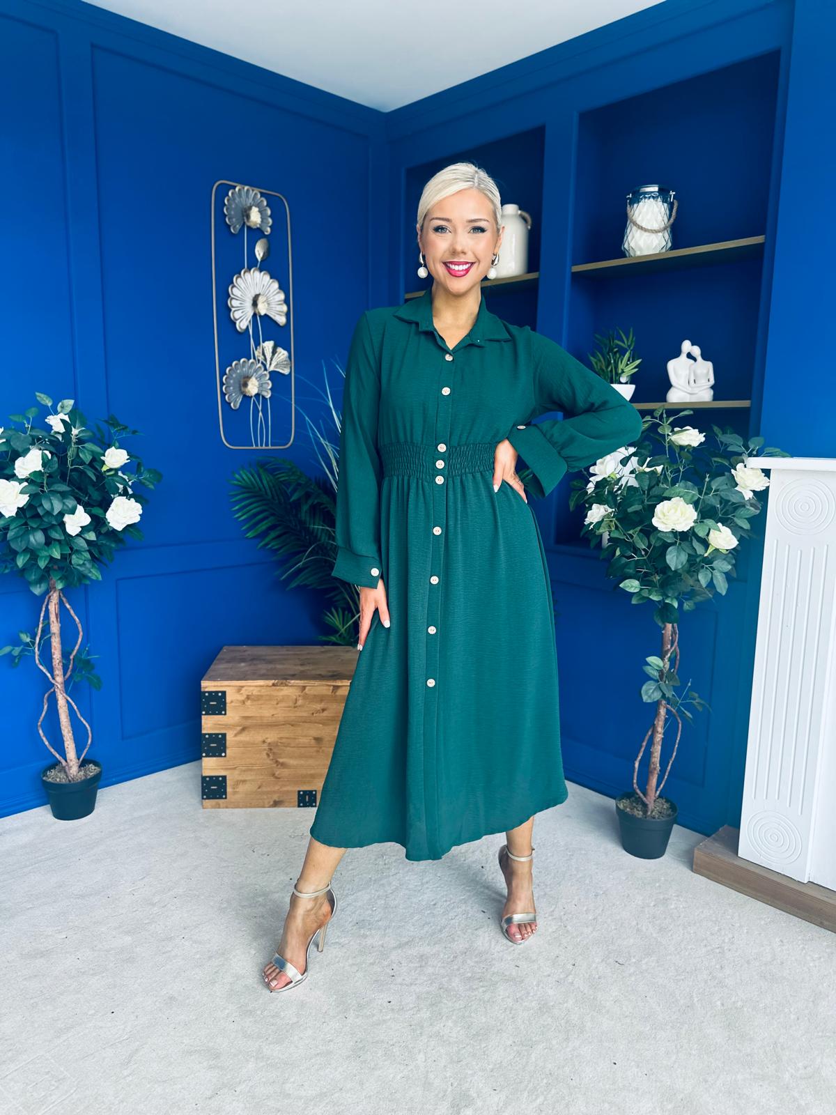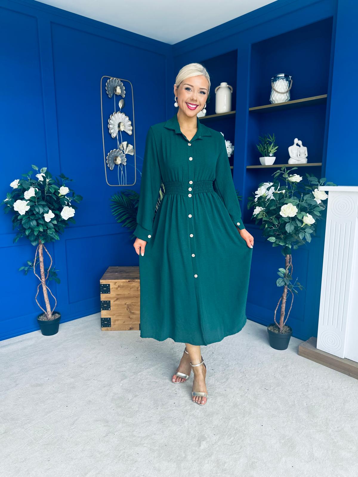 With just the top button opening the Brooke gives all the style of a shirt dress with the added comfort of the faux button detail