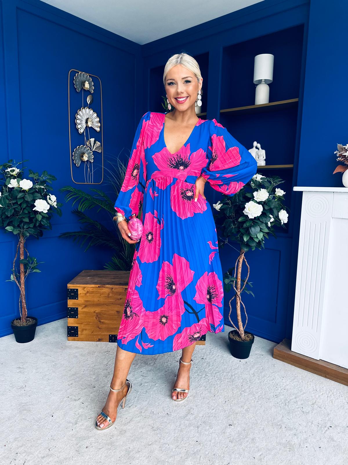 With a fabulous soft V neckline, beautiful full pleated sleeve, elasticated waist to cinch with comfort and flowing skirt to flatter
