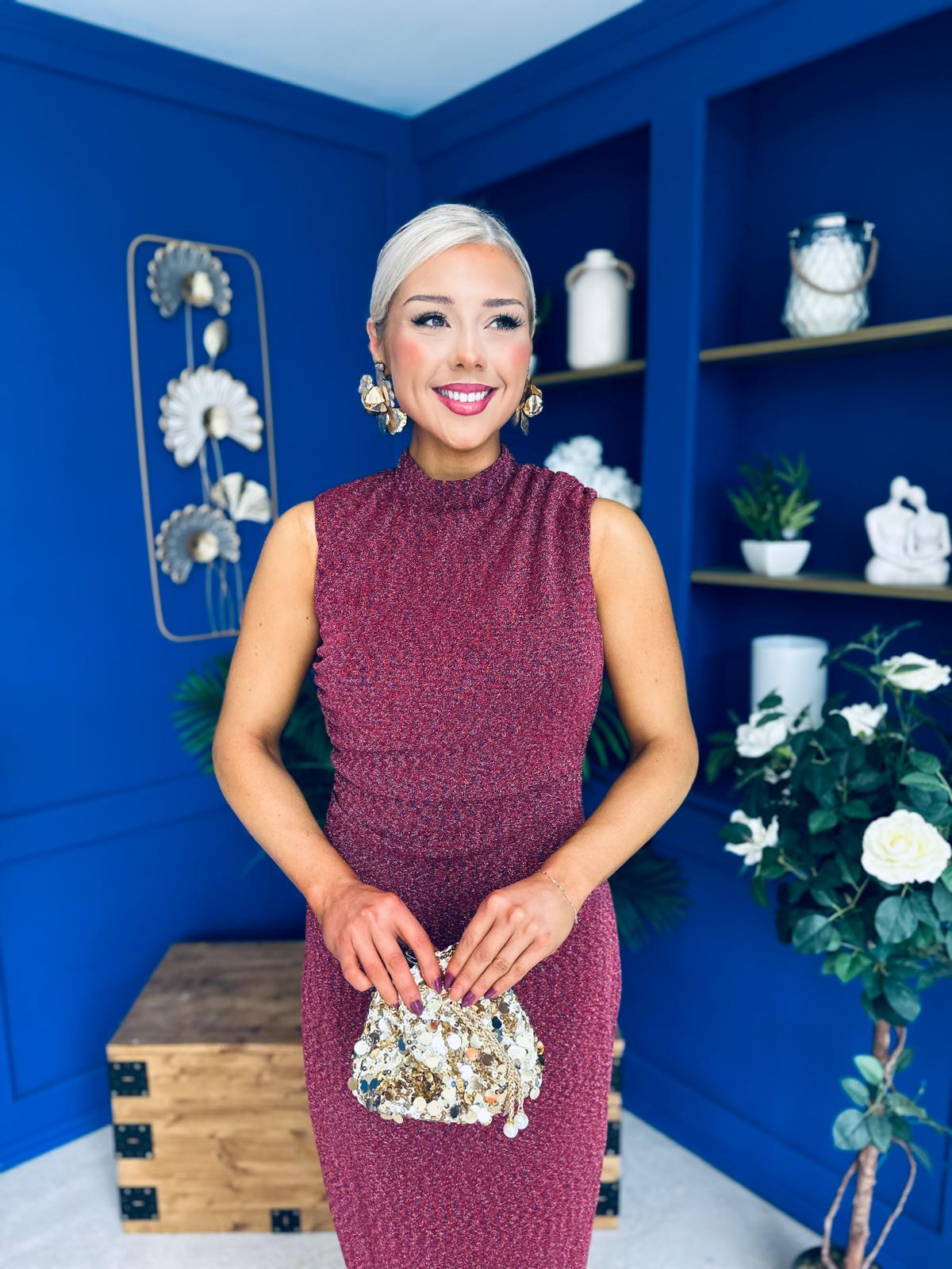 The maxi length adds a touch of elegance while the shimmer fabric will have all eyes on you.