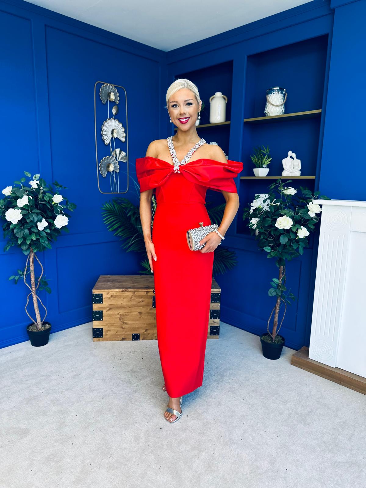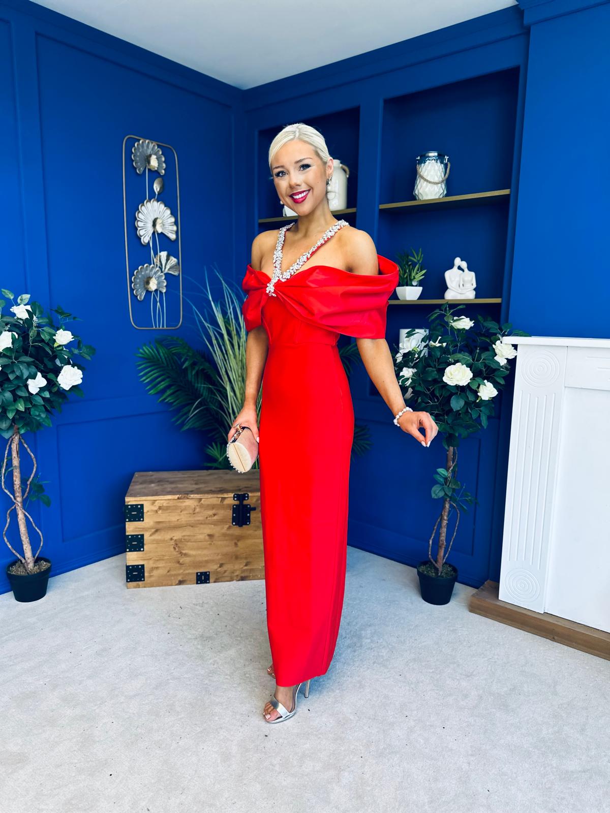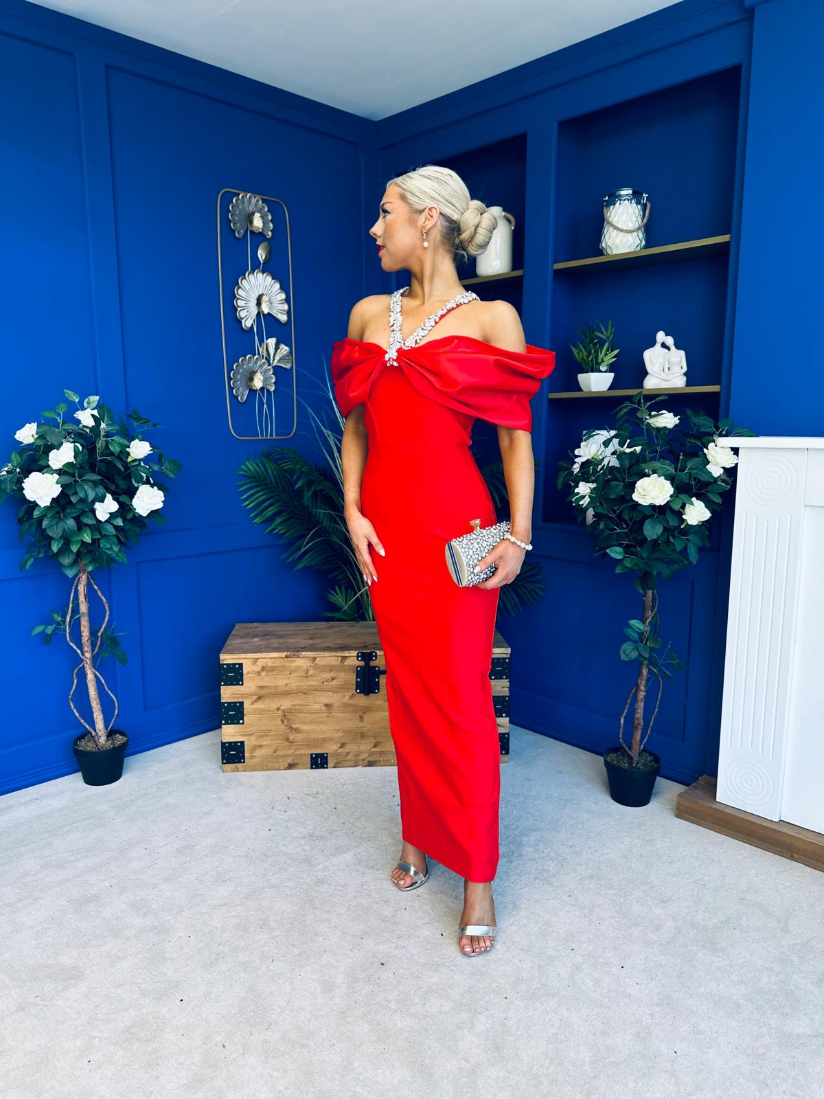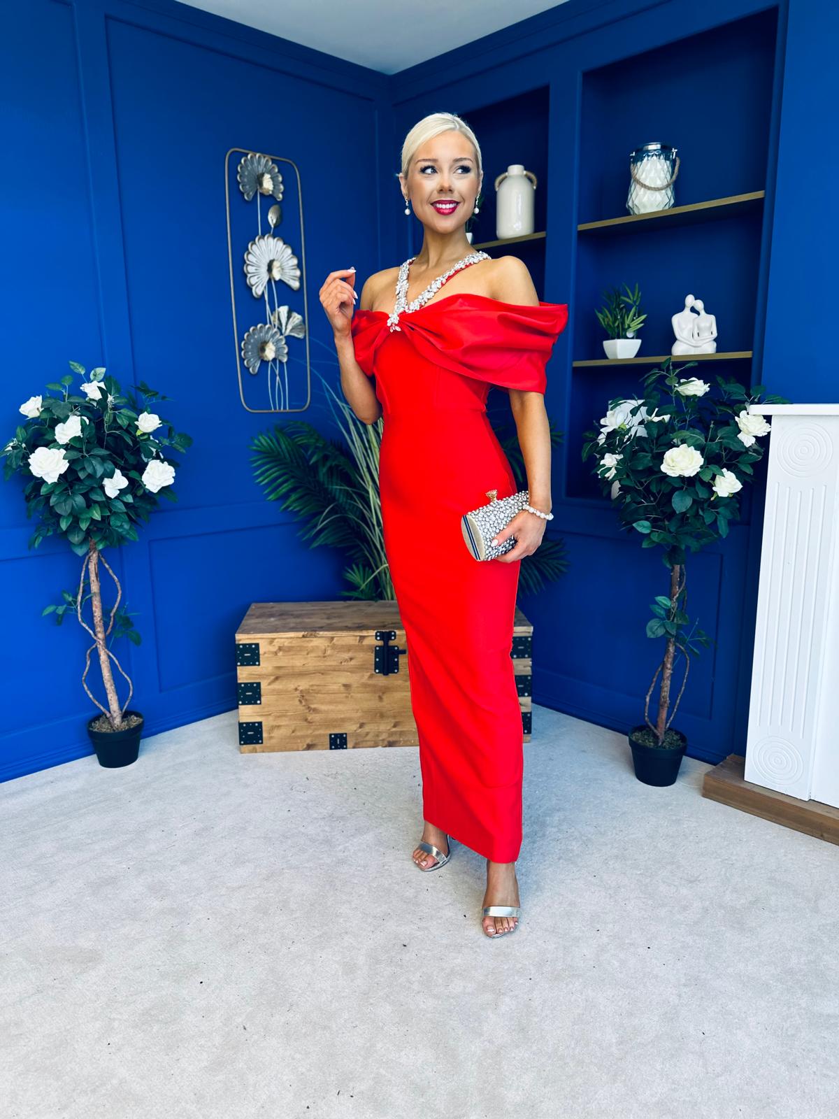 Camilla Embellished Occasion Dress Red