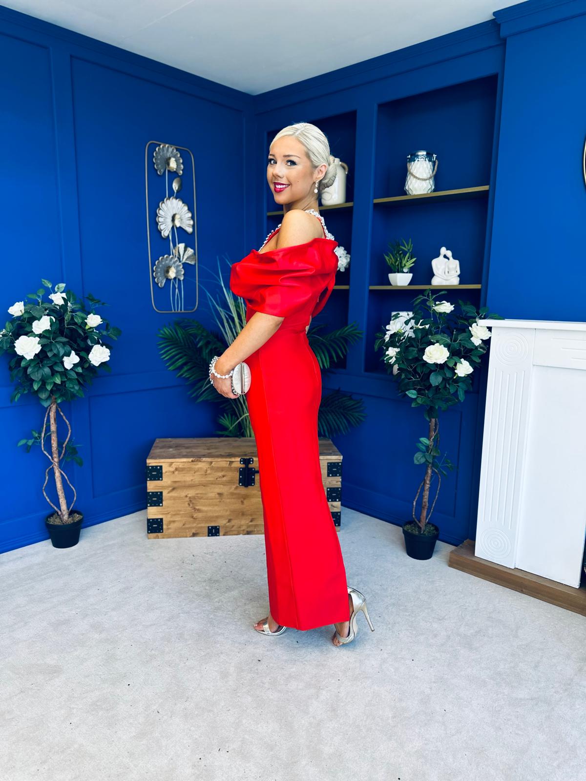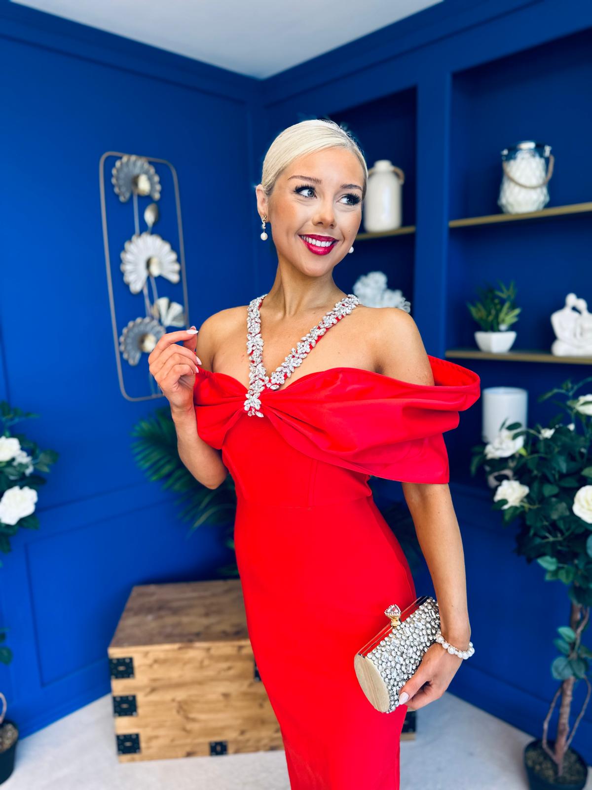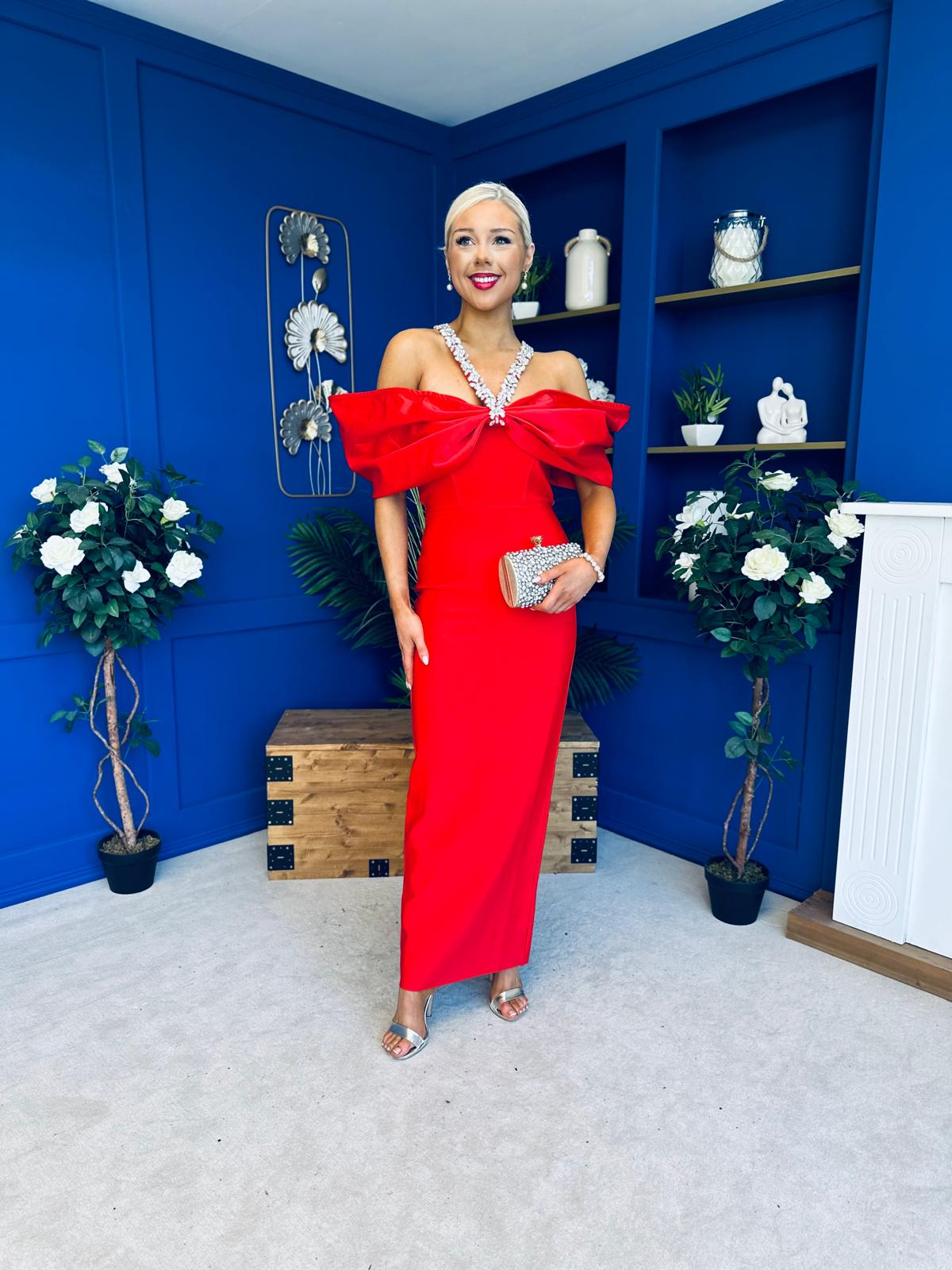 Camilla Embellished Occasion Dress Red