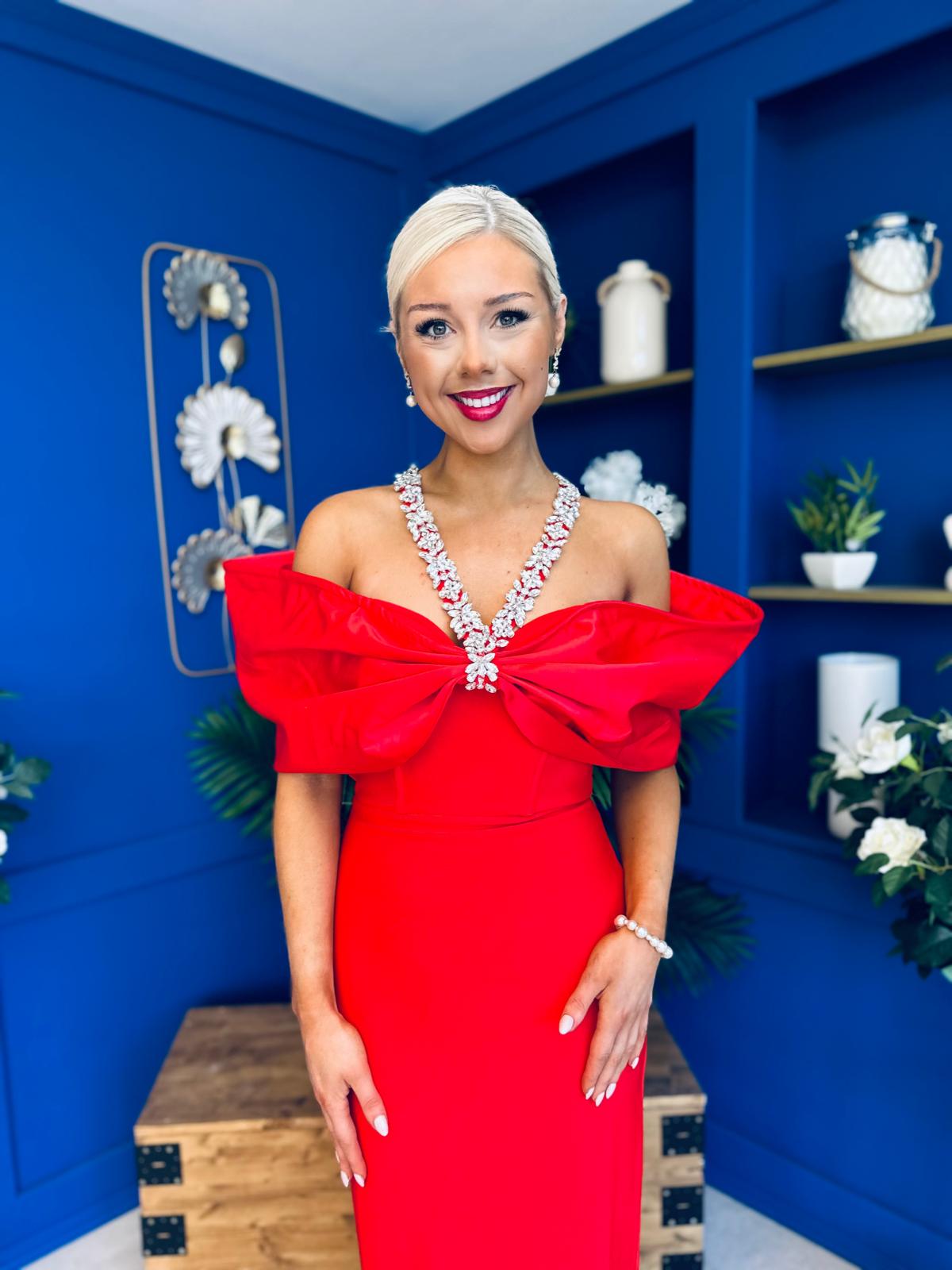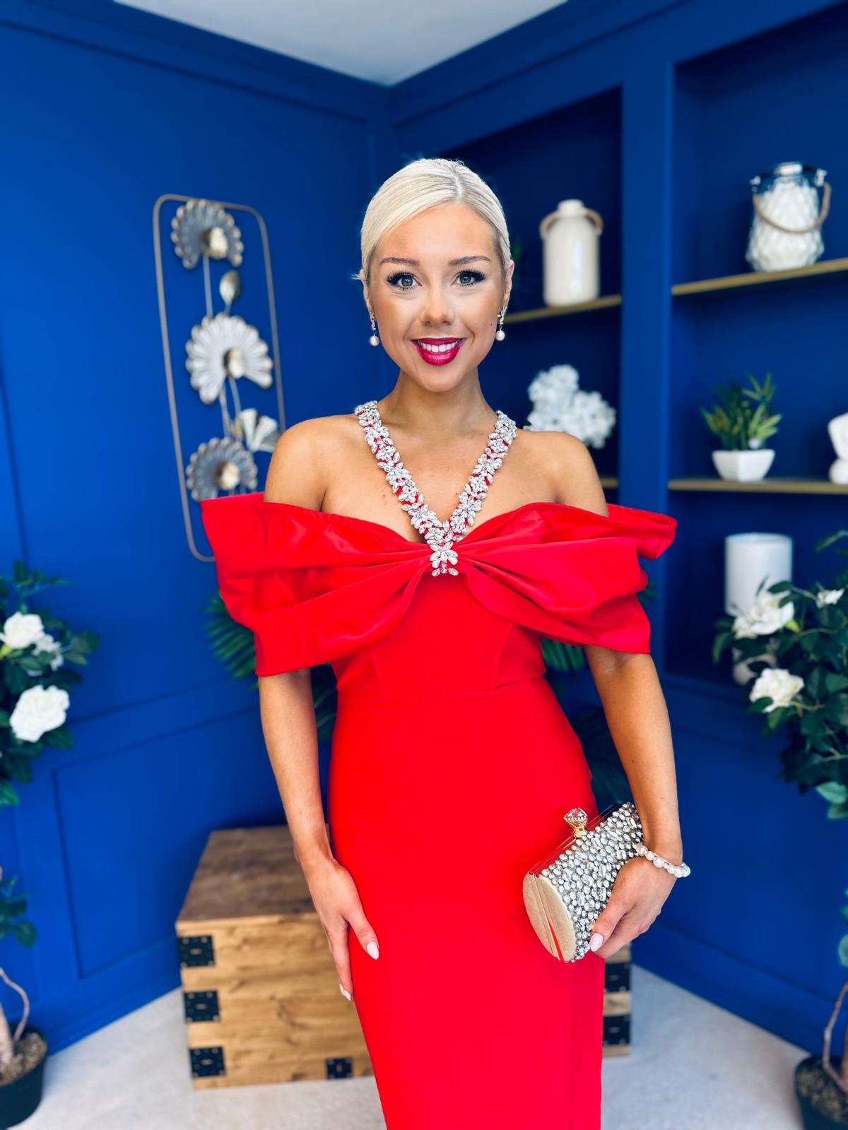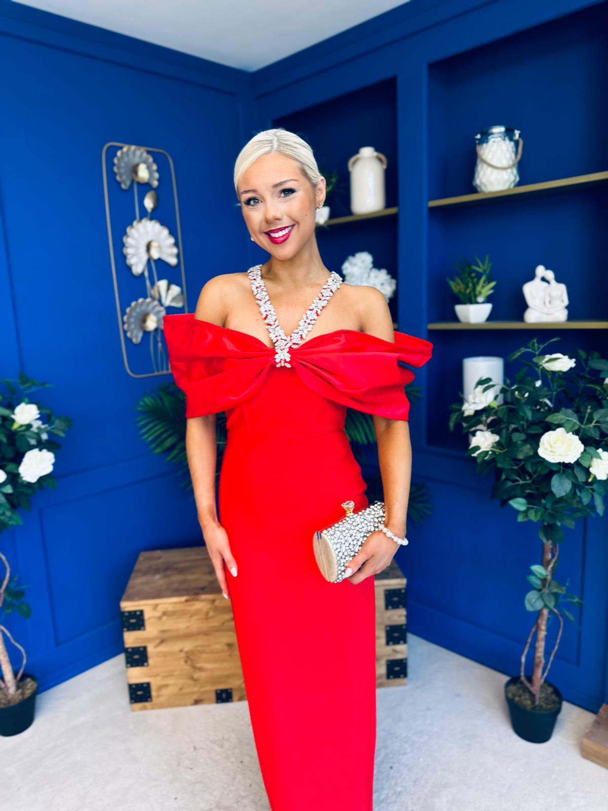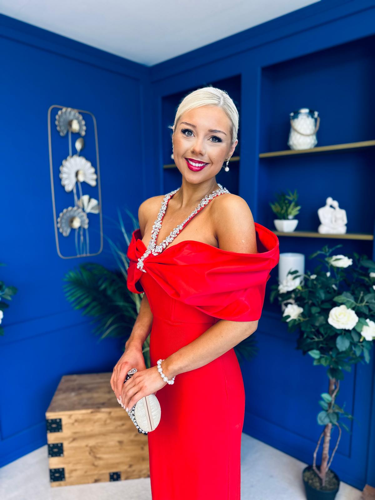 Camilla Embellished Occasion Dress Red