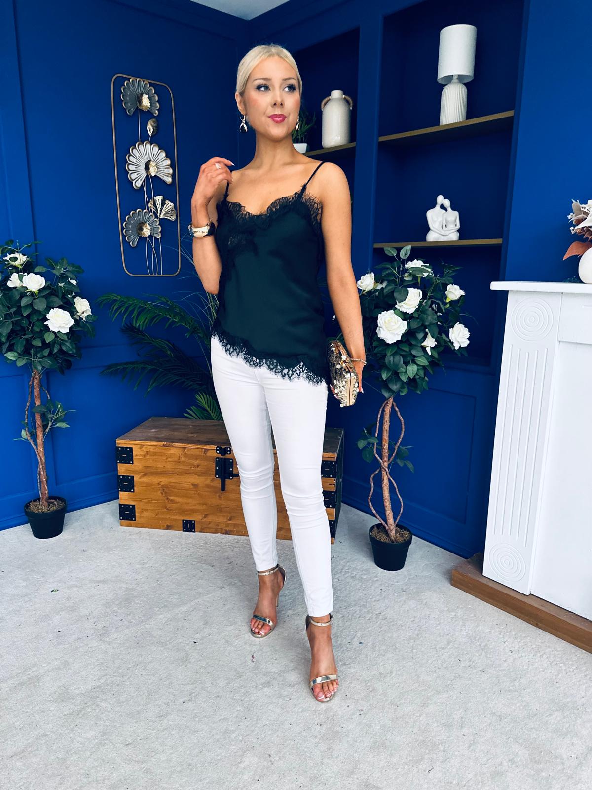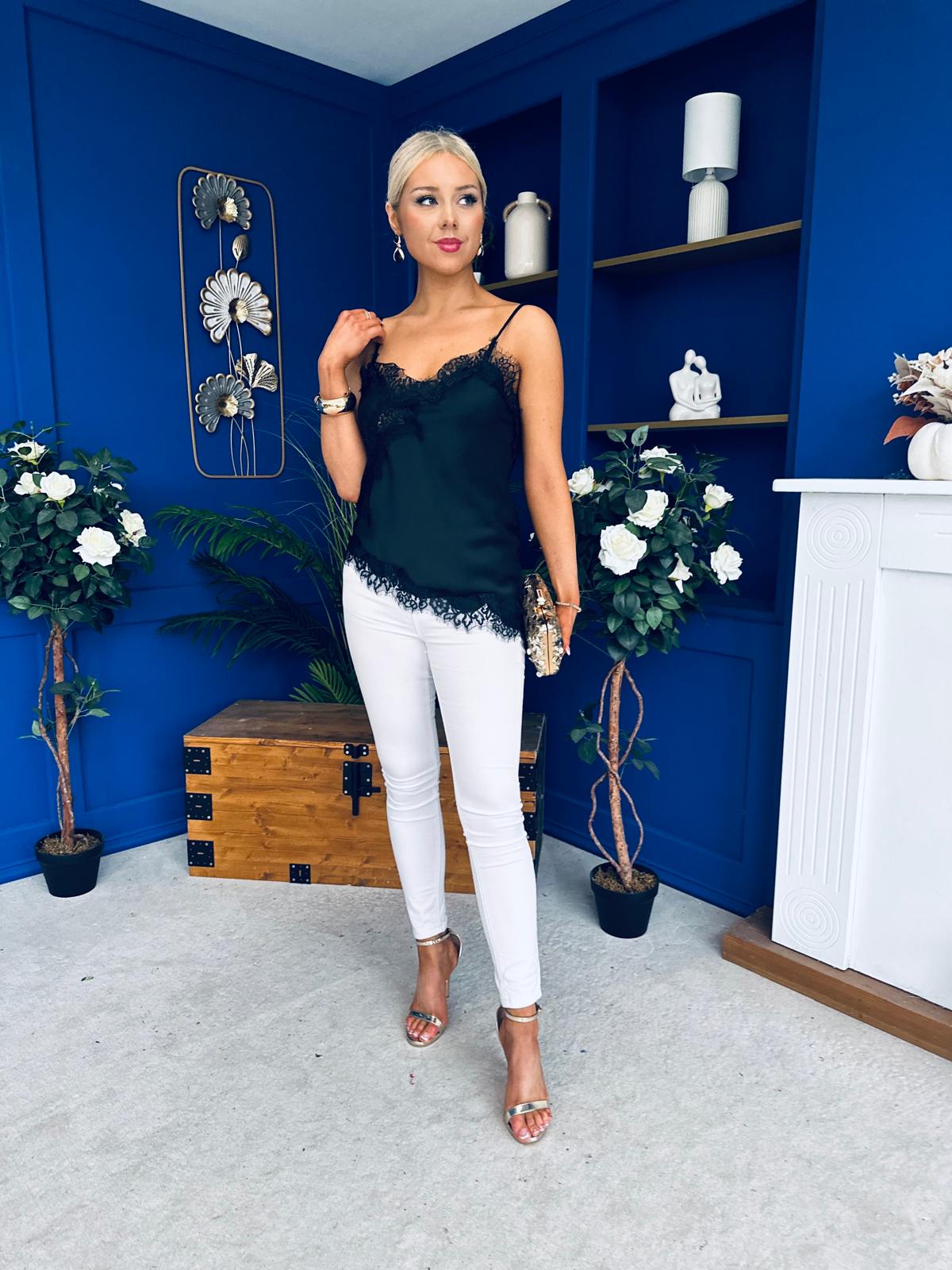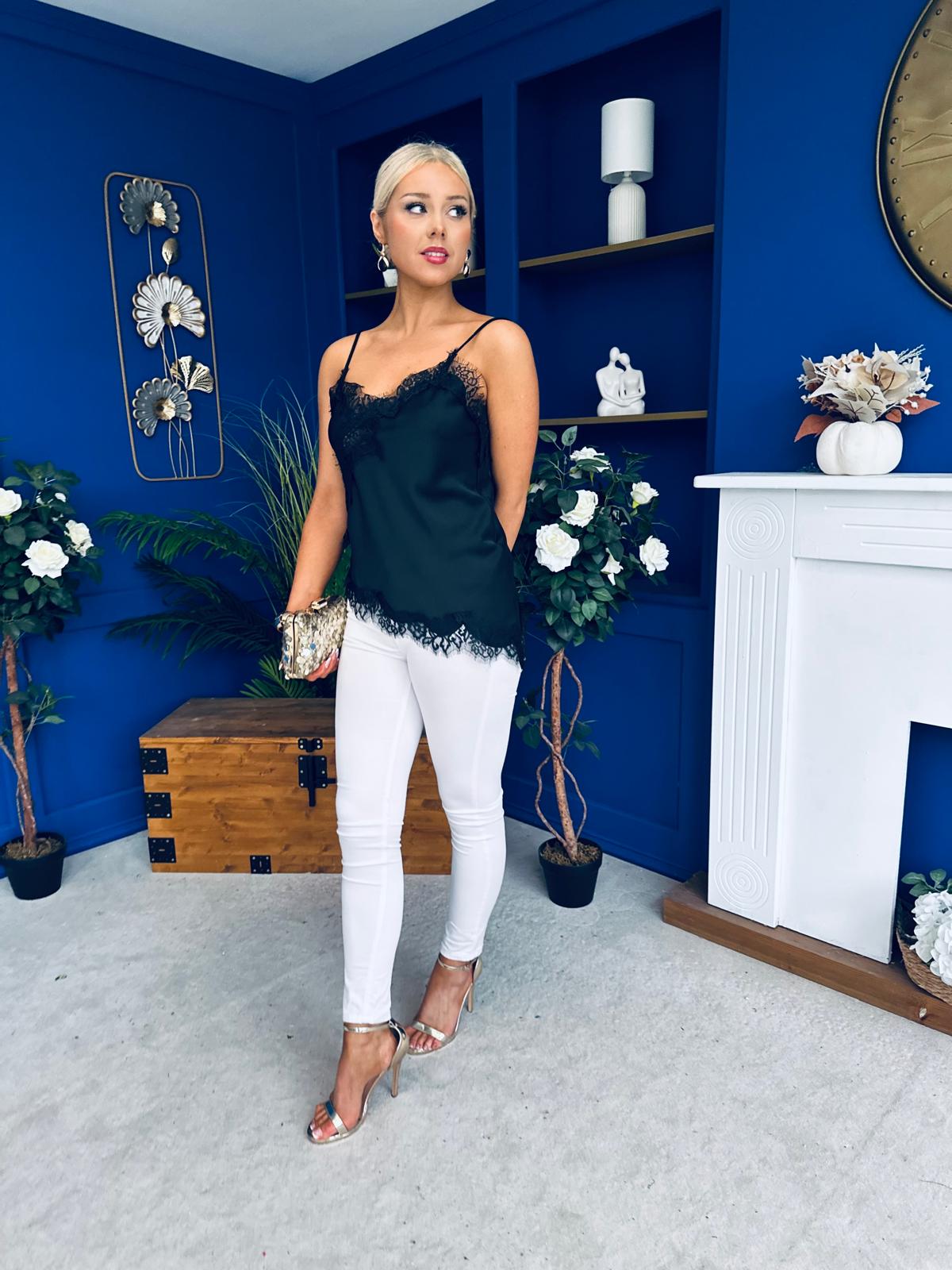 Caroline Lace Trim Cami Top Black