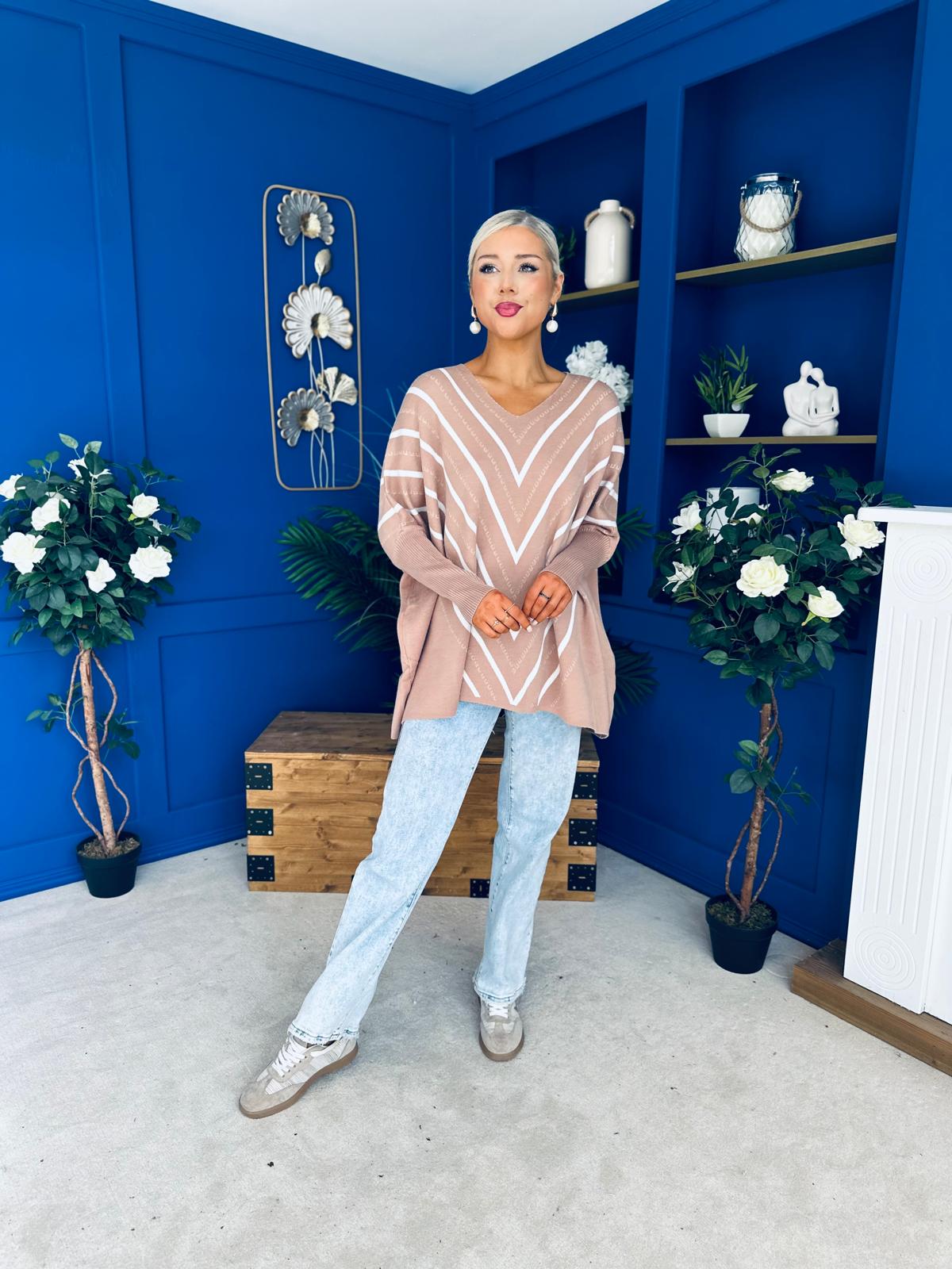 Gorgeous on trend oversized knit jumper. From its stand out long cuff, batwing style sleeve & gold thread detail this is the perfect piece to pop over you fav jeans ❤️ 😍 💖