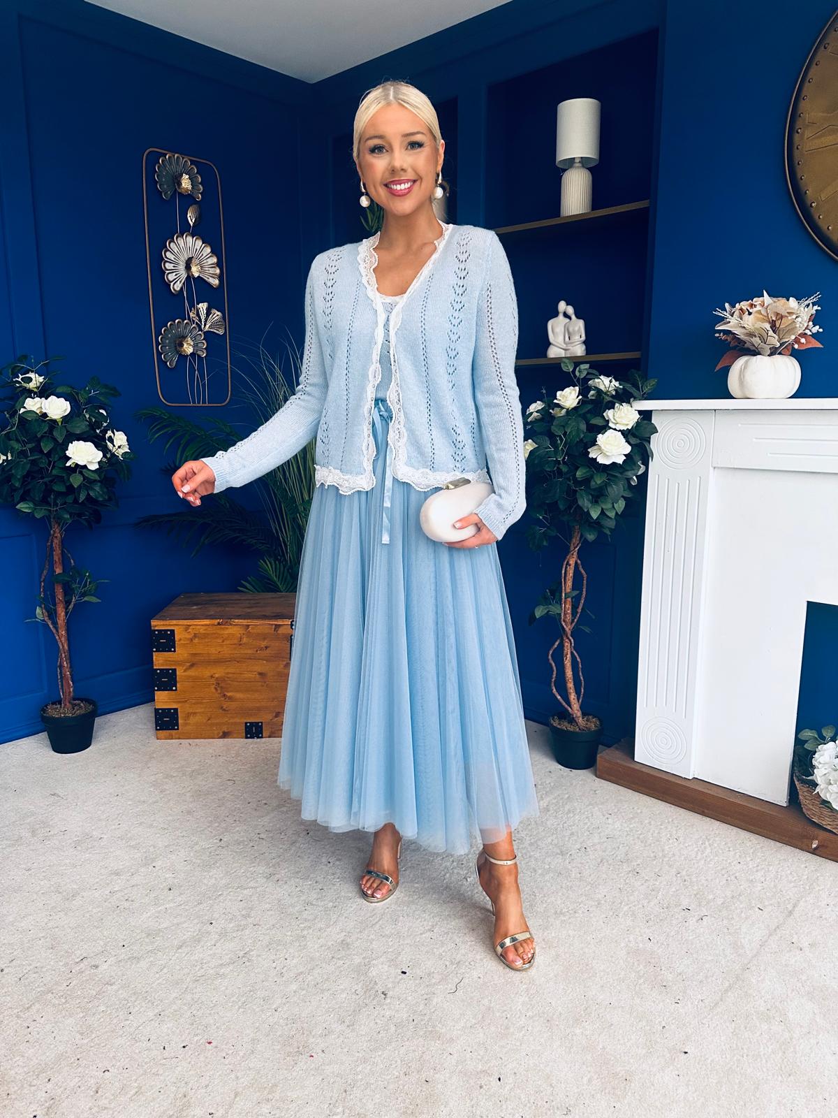 Celine Detailed Tulle Skirt Blue