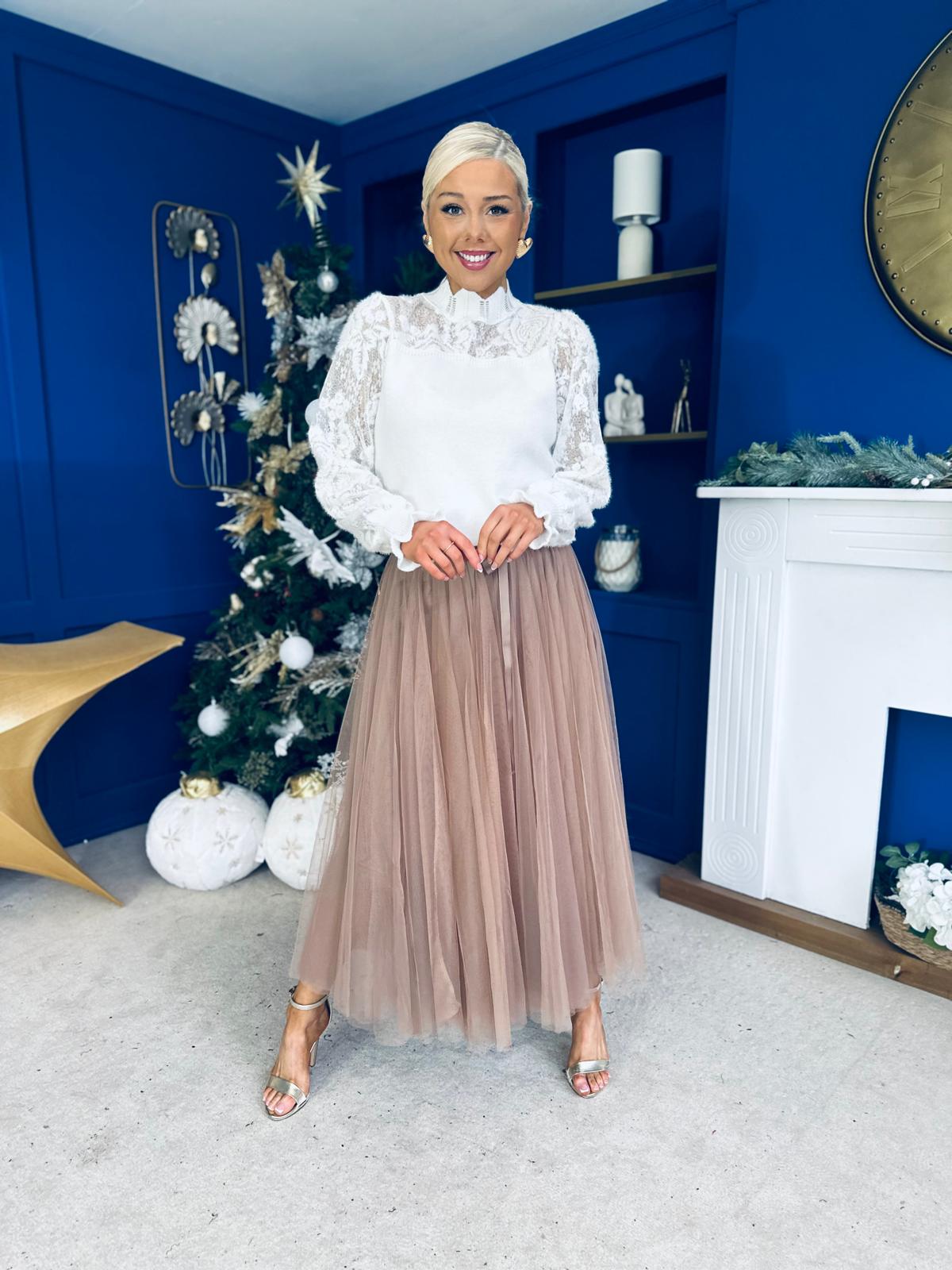Celine Detailed Tulle Skirt Mocha