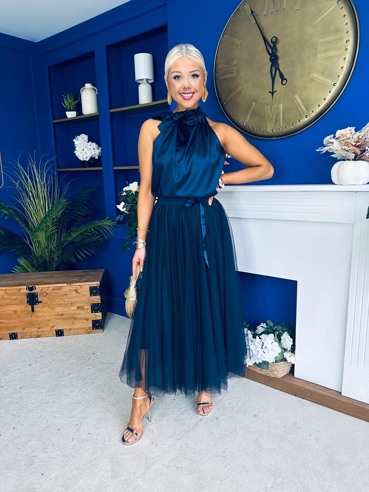 Celine Detailed Tulle Skirt Navy