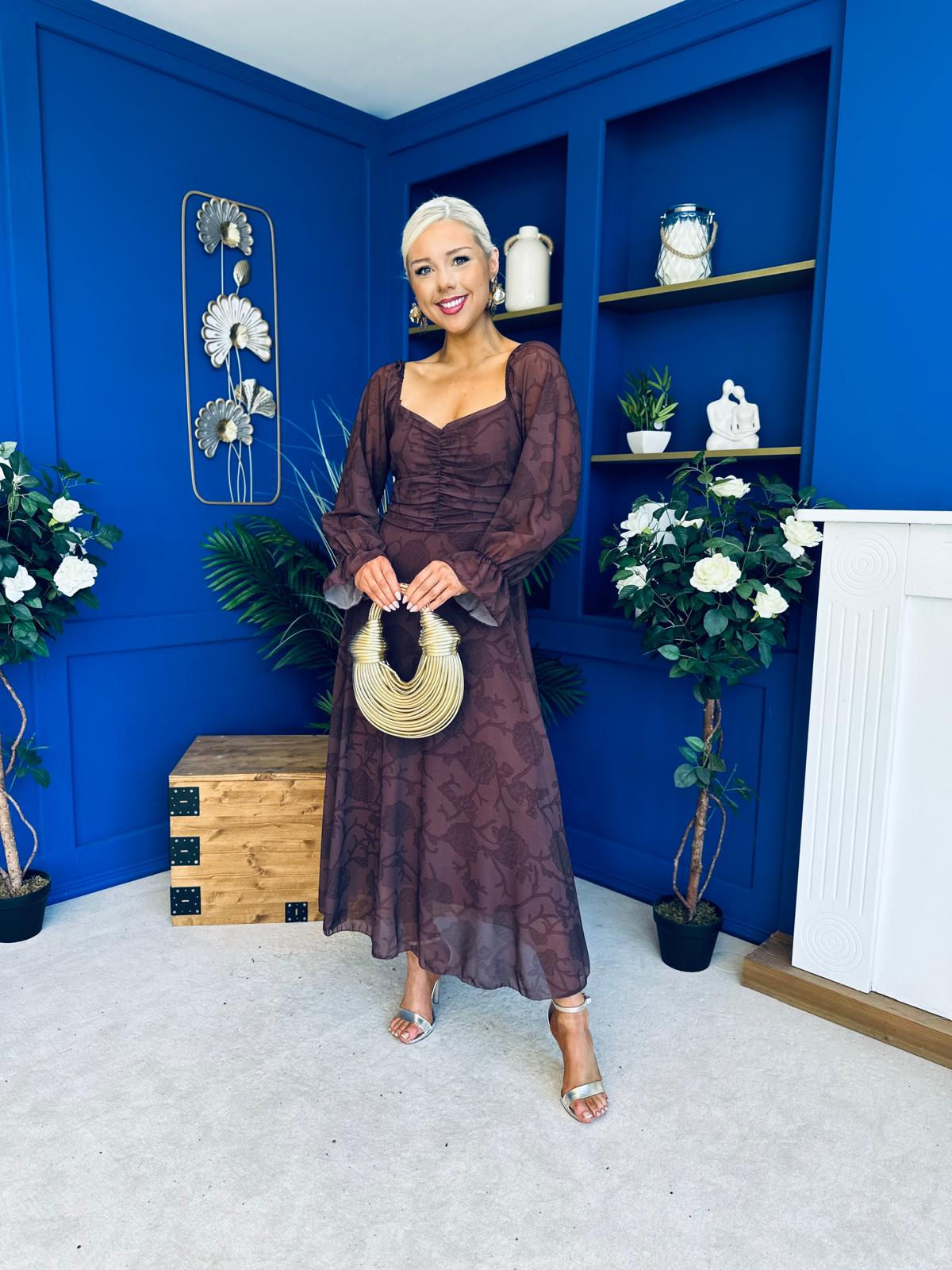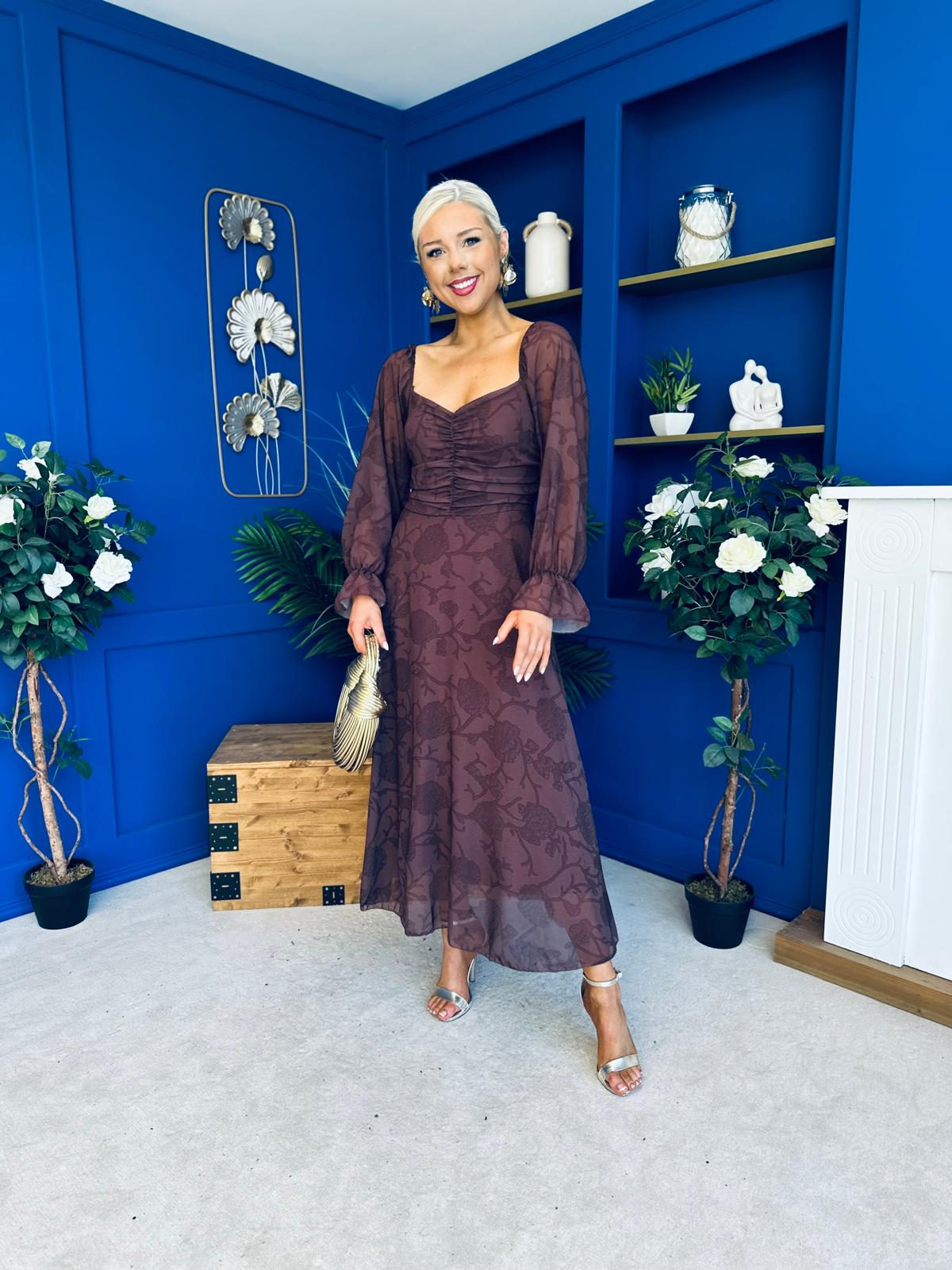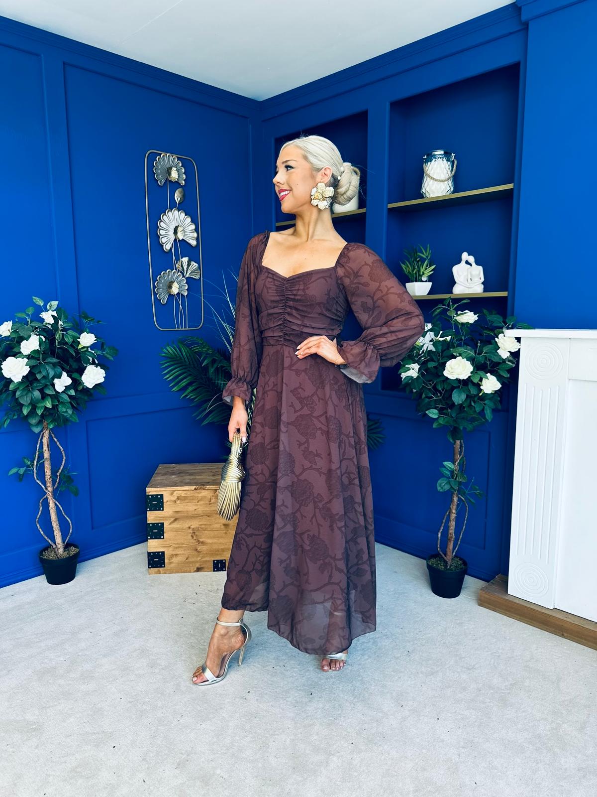 This dress comes in the most amazing lined chiffon, with beautiful sleeve detail, ruched bust, banded midriff, elasticated back to cinch and flowing skirt to flatter