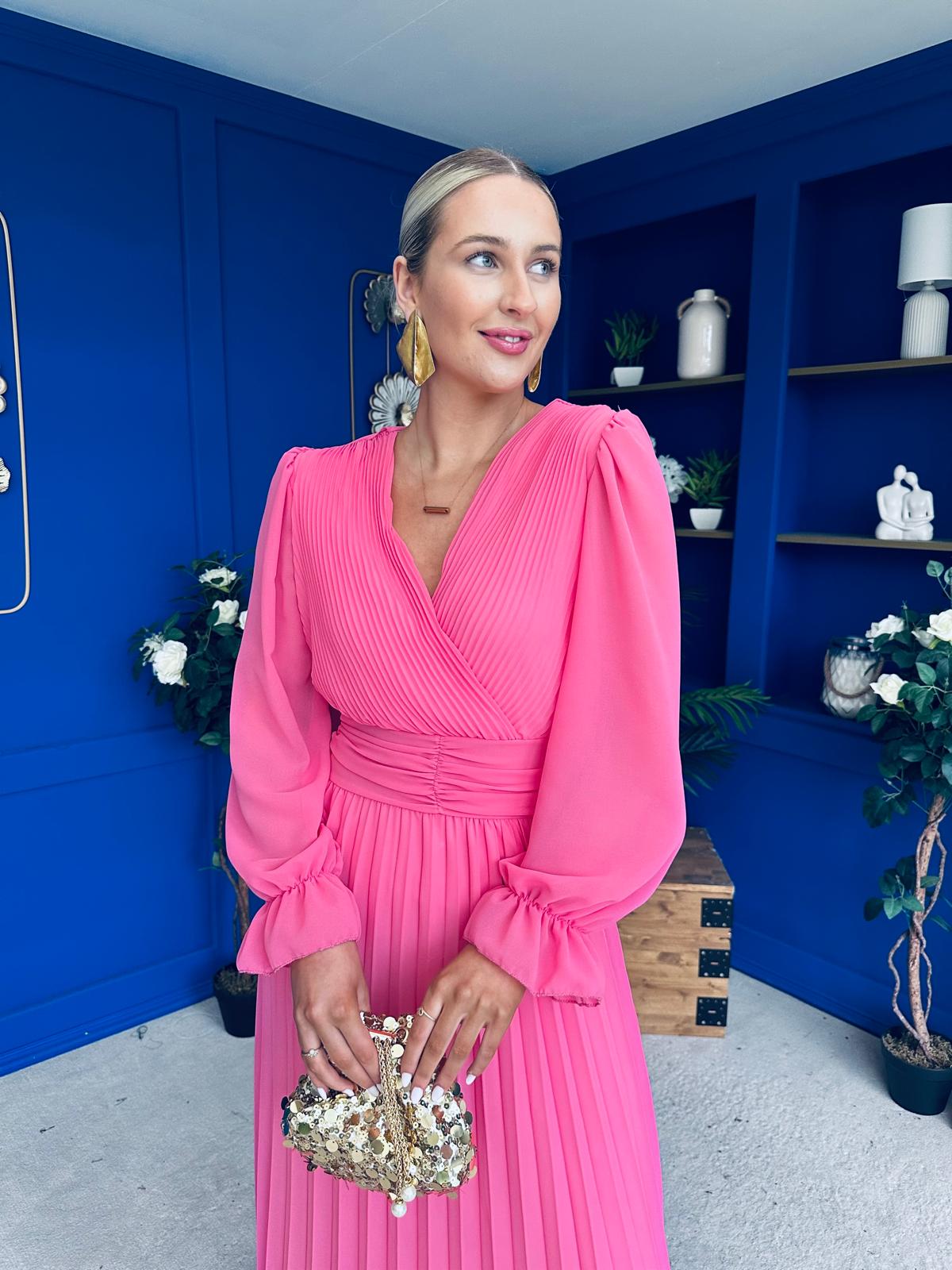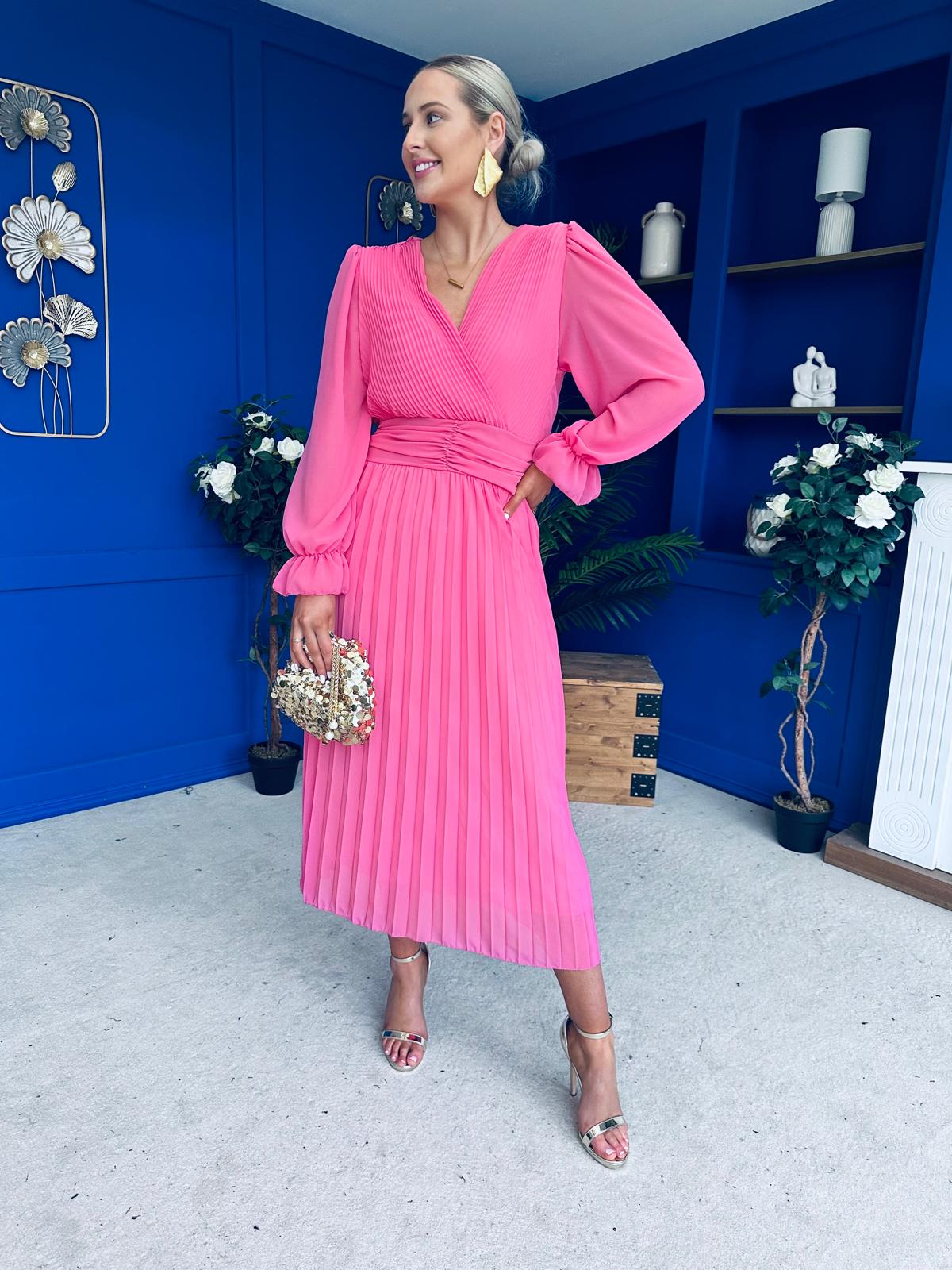 Clodagh Pleat Detailed Midi Dress Pink