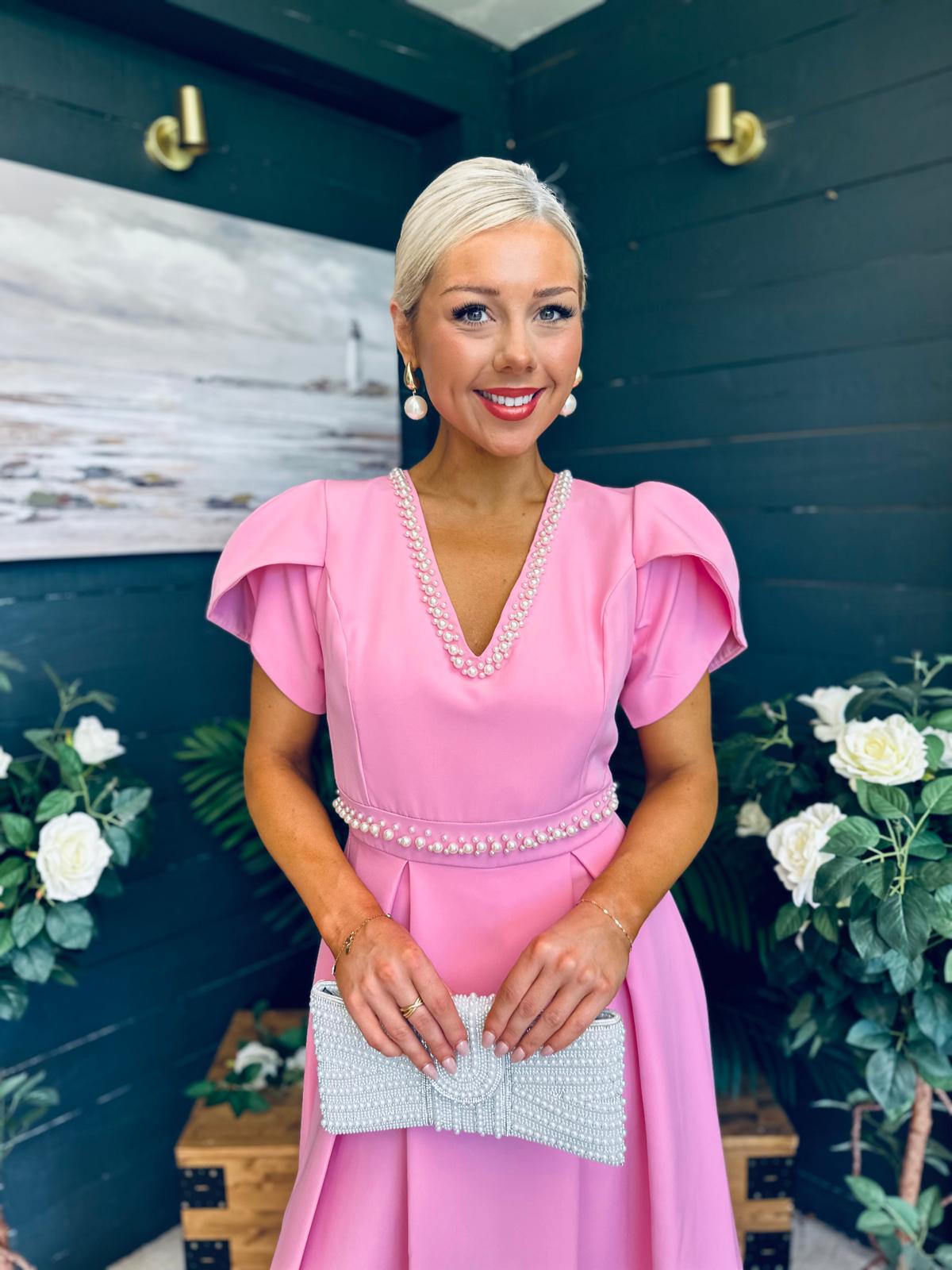 Collins Pearl Detail Occasion Dress Pwr Pink